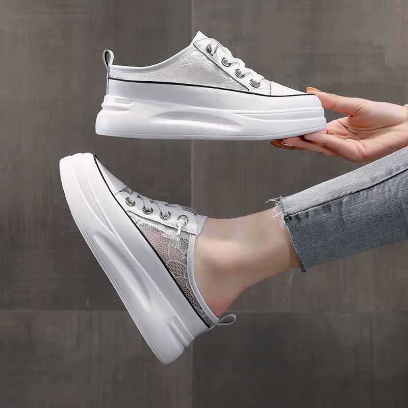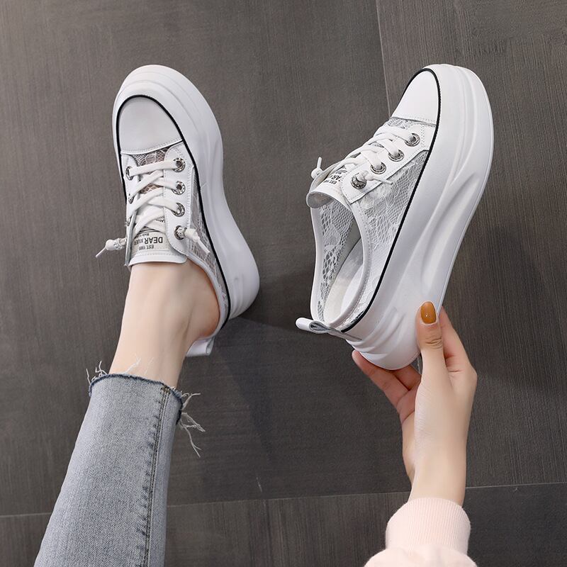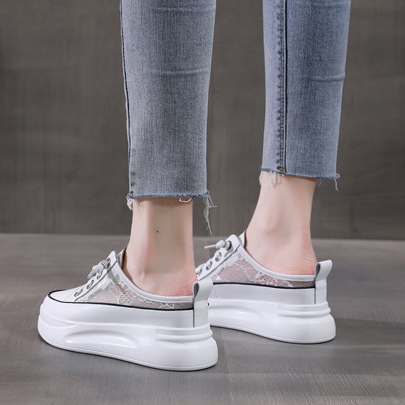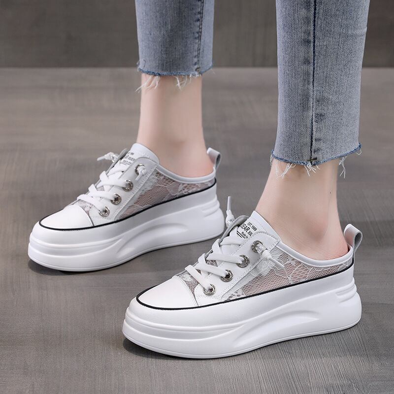 初回送料無料メッシュの小さな白い靴ハーフスリッパ包頭サンダルレディースシューズ