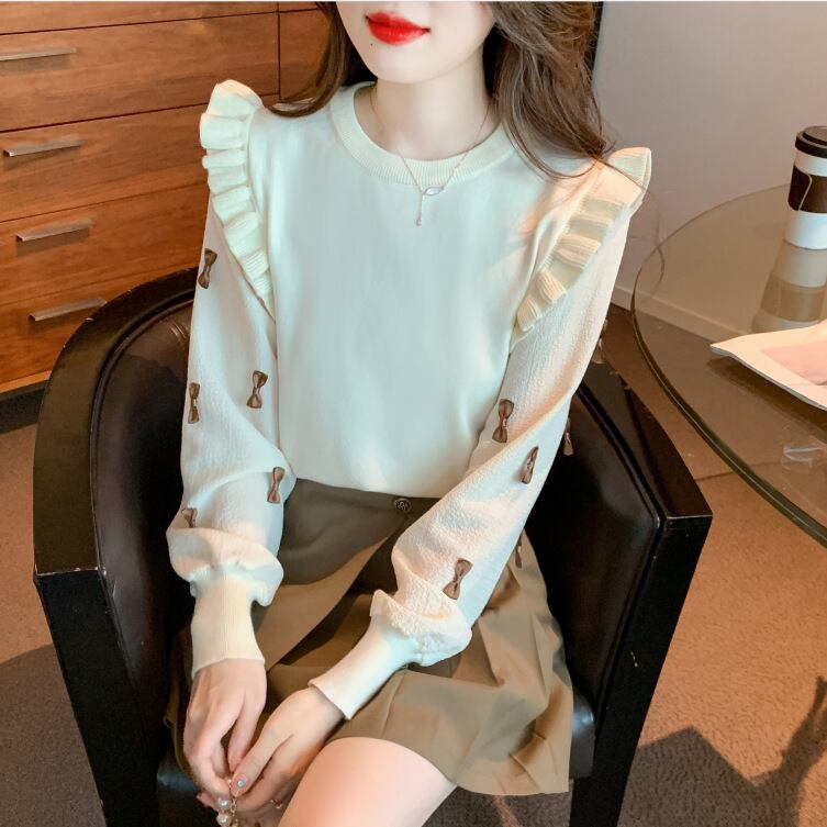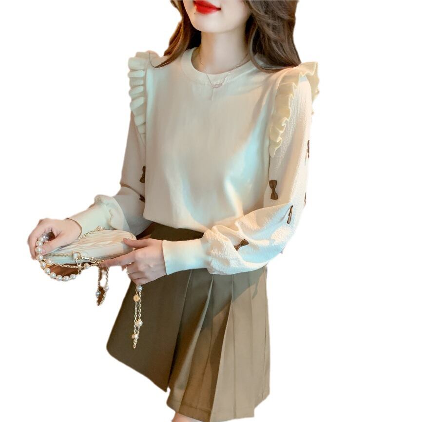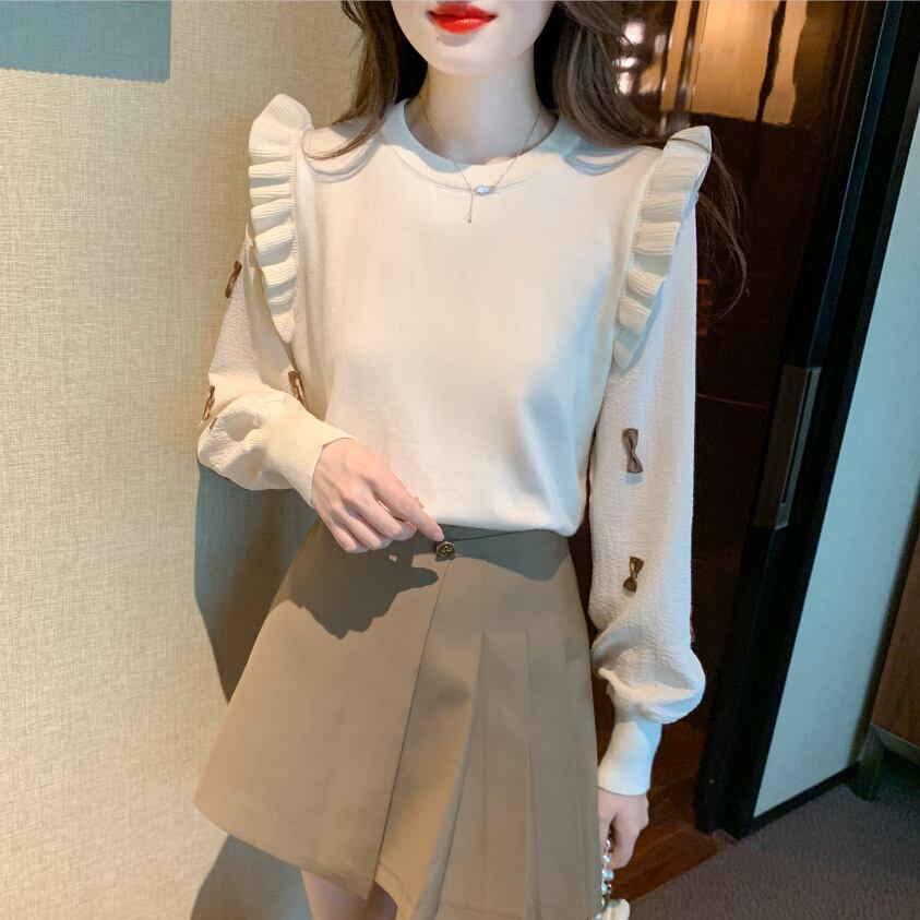 初回送料無料 新作フレンチパッチワークパフスリーブトップス レーディスファション上着