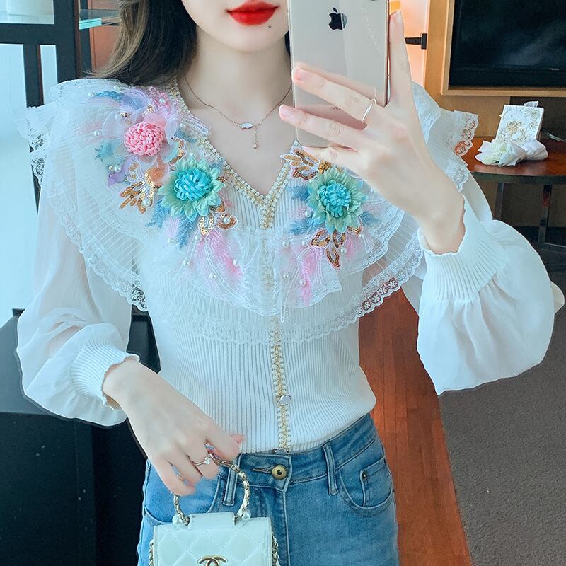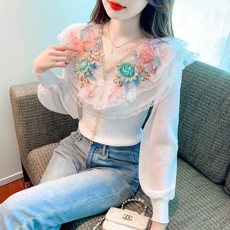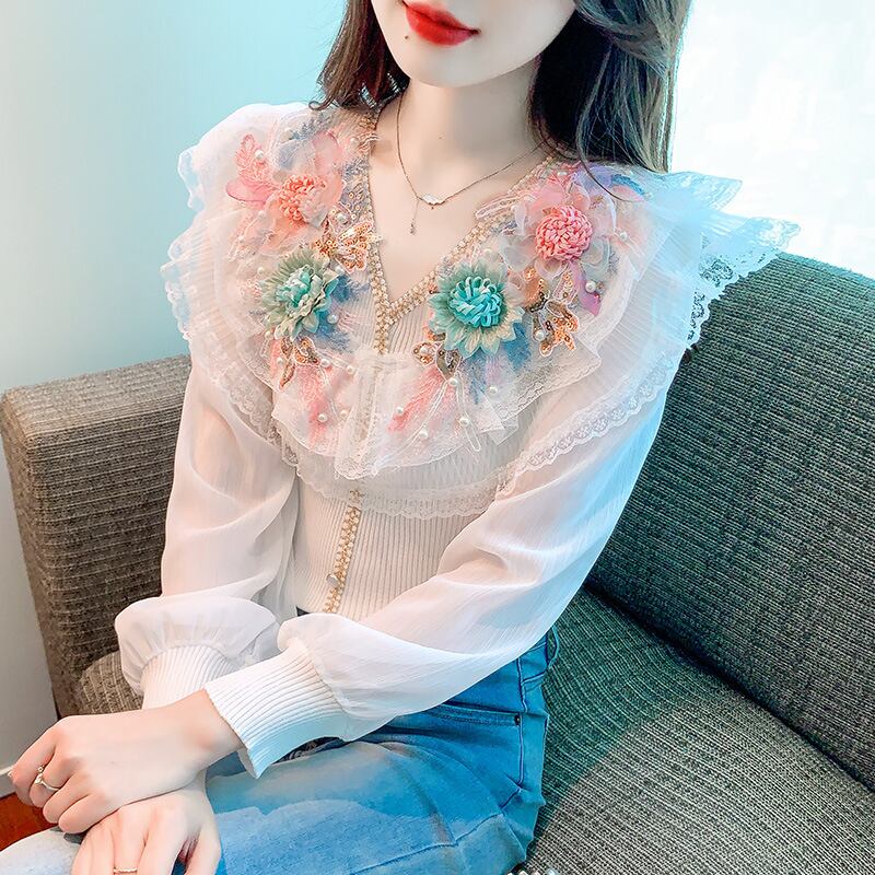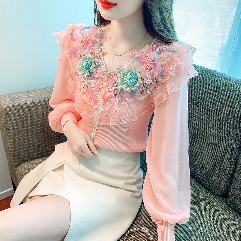 初回送料無料 秋の新作フレンチパッチワークシフォントップス レーディスファション洋服
