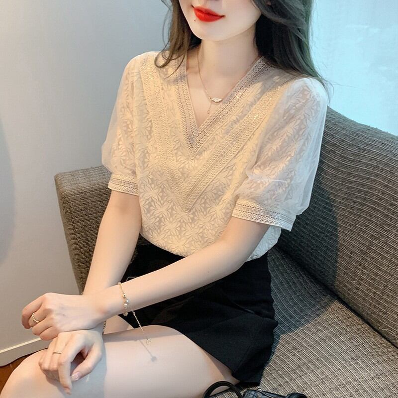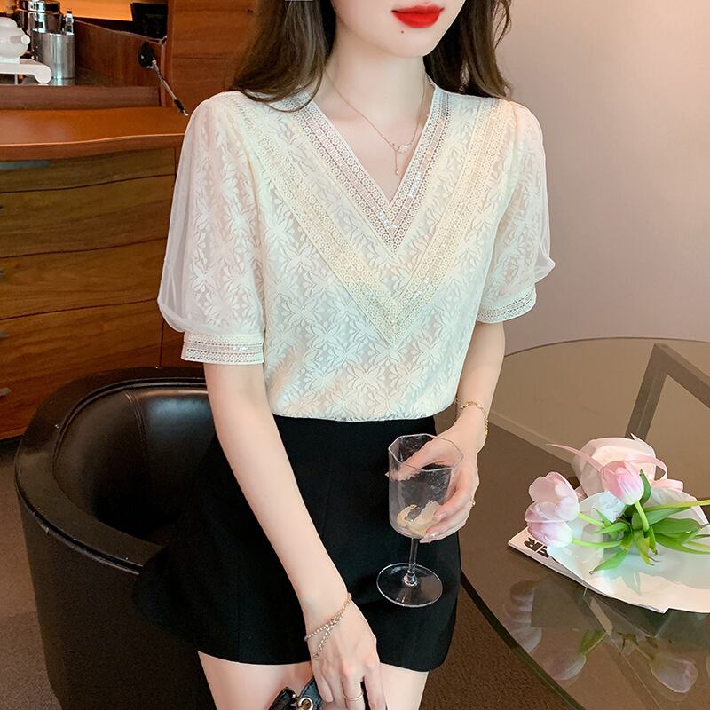 初回送料無料 夏レディースファッション カジュアル おしゃれ 半袖 vネック レース トップス