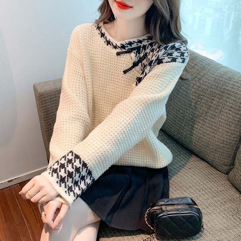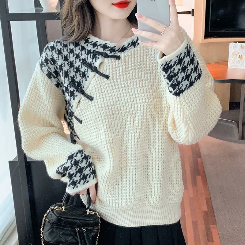 初回送料無料 セーター 千鳥格子 ゆったりサイズトップス レーディスファション洋服 人気上着