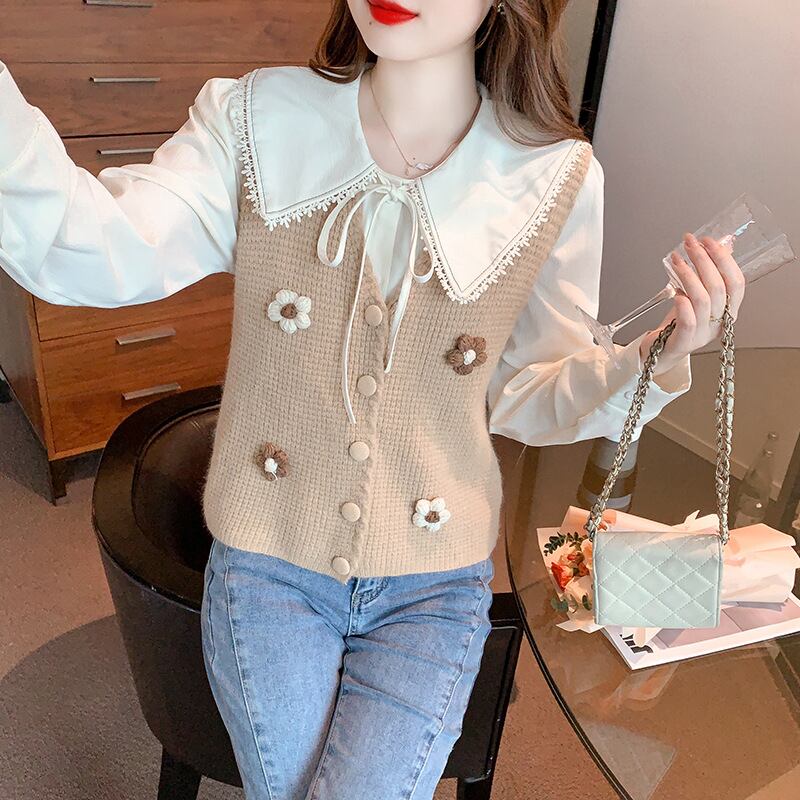 初回送料無料 新作シフォン秋ニットベスト おしゃれなシャツ レディースファション洋服 人気上着