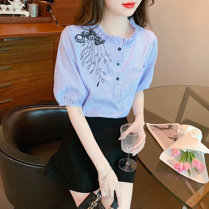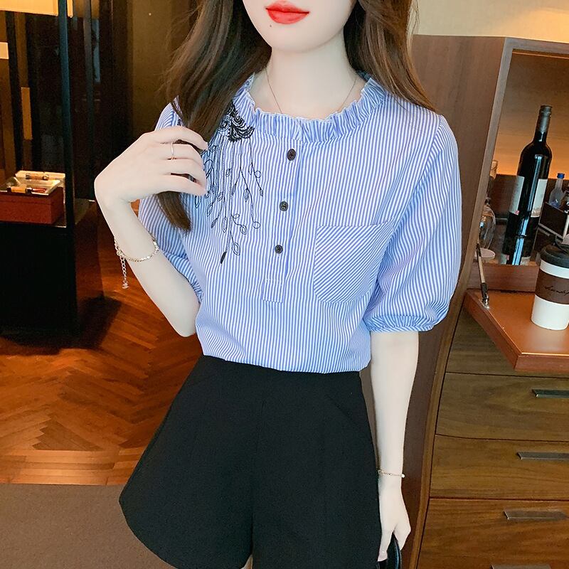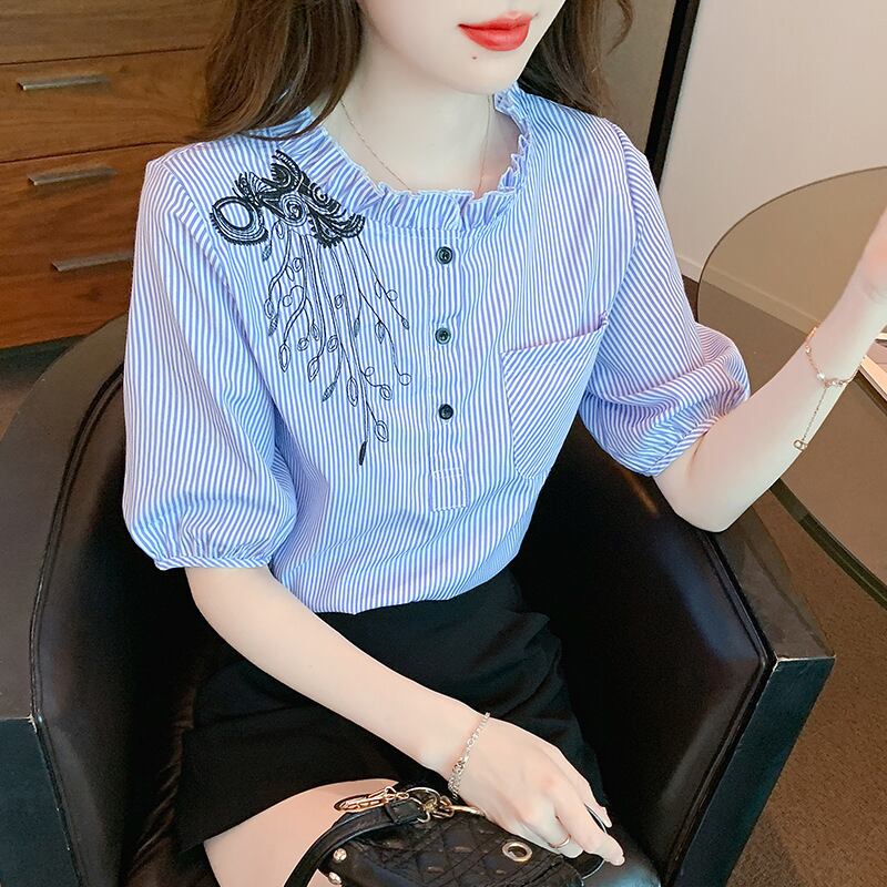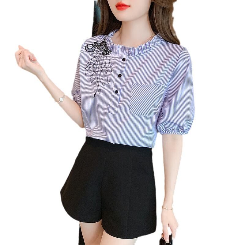 初回送料無料 夏レディースファッション カジュアル 半袖 ゆったり 刺繍 シフォン トップス