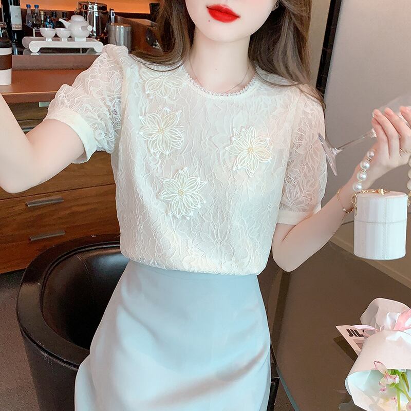 初回送料無料 夏レディースファッション カジュアル 半袖 刺繍 シフォン レース トップス