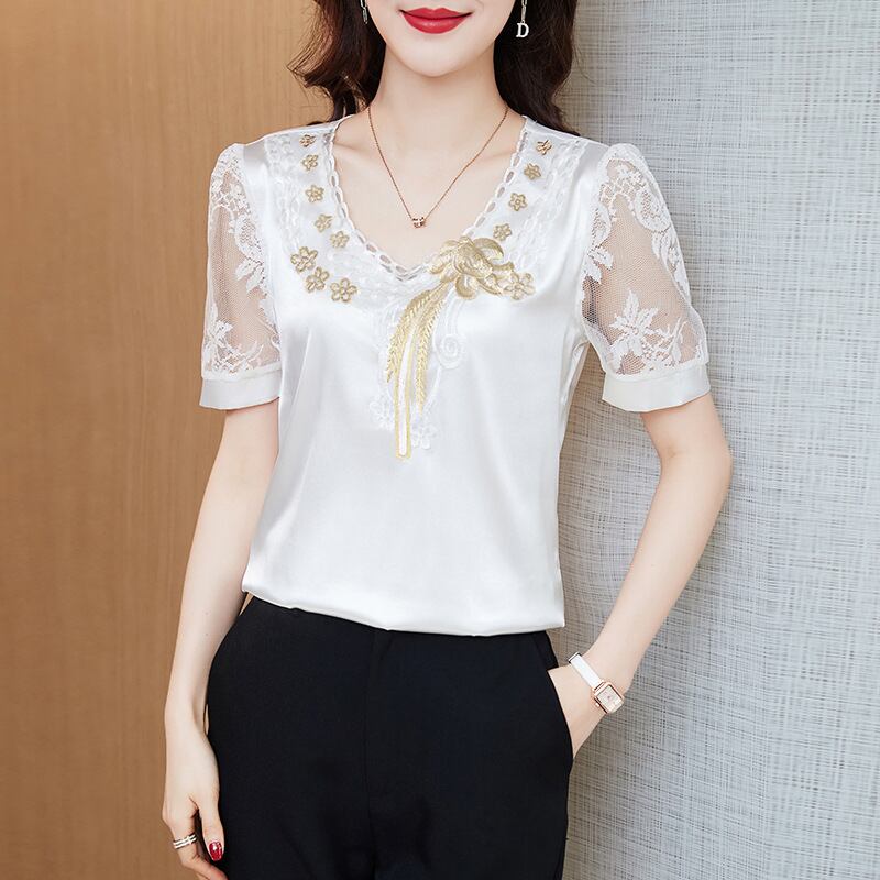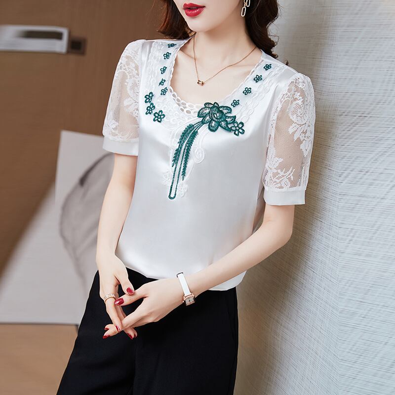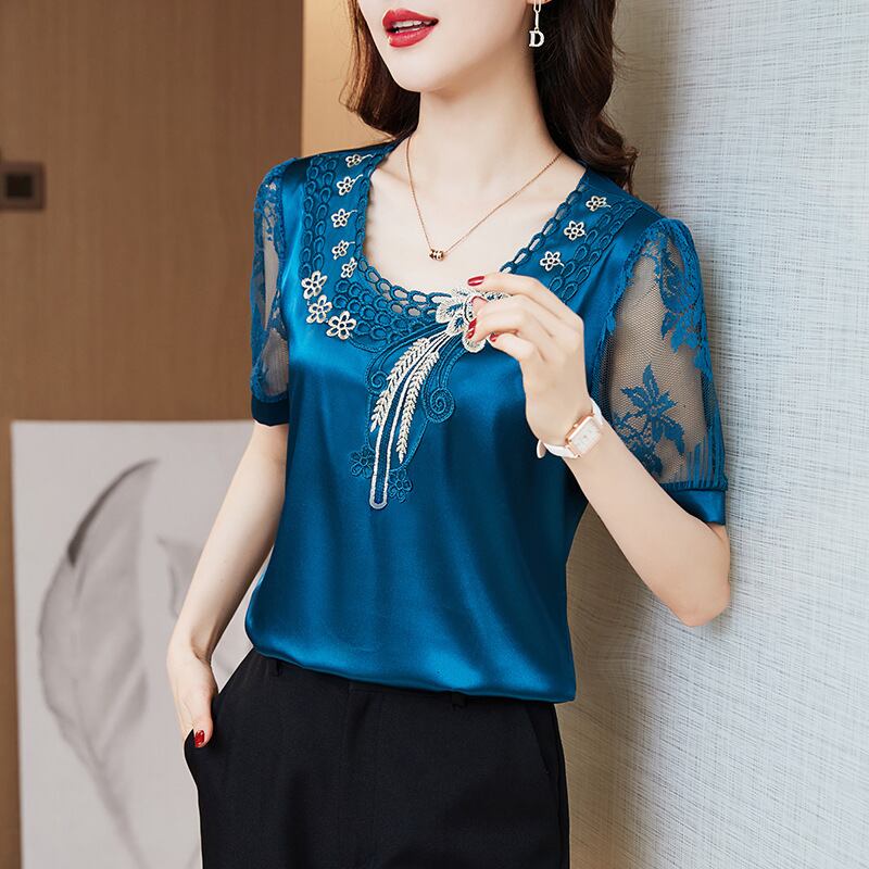 初回送料無料 夏レディースファッション カジュアル おしゃれ 半袖レース サテン トップス