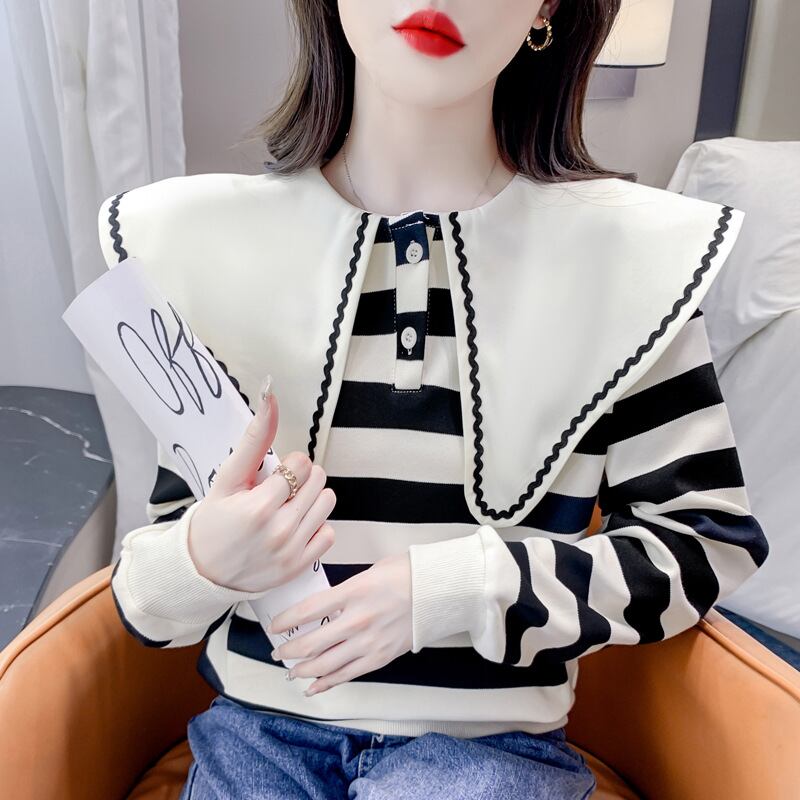 初回送料無料 新作ブラウス 長袖ストライプ開襟トップス レーディスファション洋服 上着