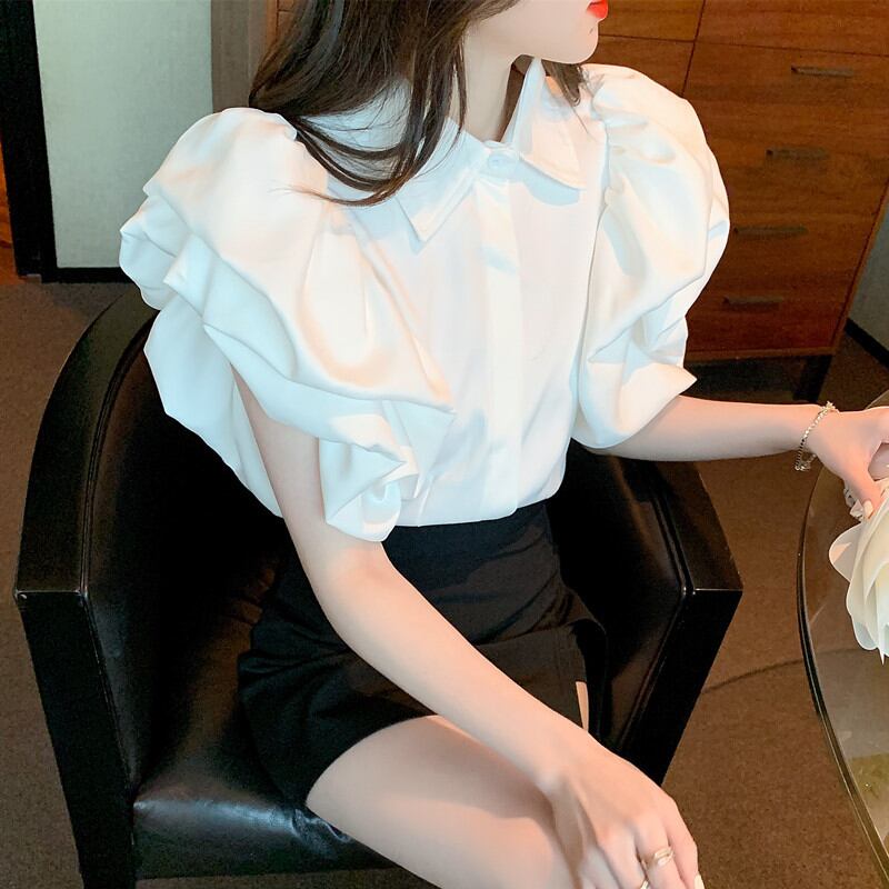 初回送料無料 夏レディースファッション カジュアル おしゃれ シャツ パフスリーブ トップス