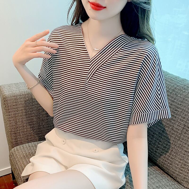 初回送料無料 新作レディースファッション カジュアル vネック tシャツ ストライプ トップス