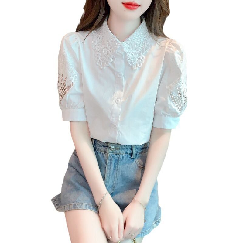 初回送料無料 夏レディースファッション カジュアル 刺繍レース シャツ 透かし彫り トップス