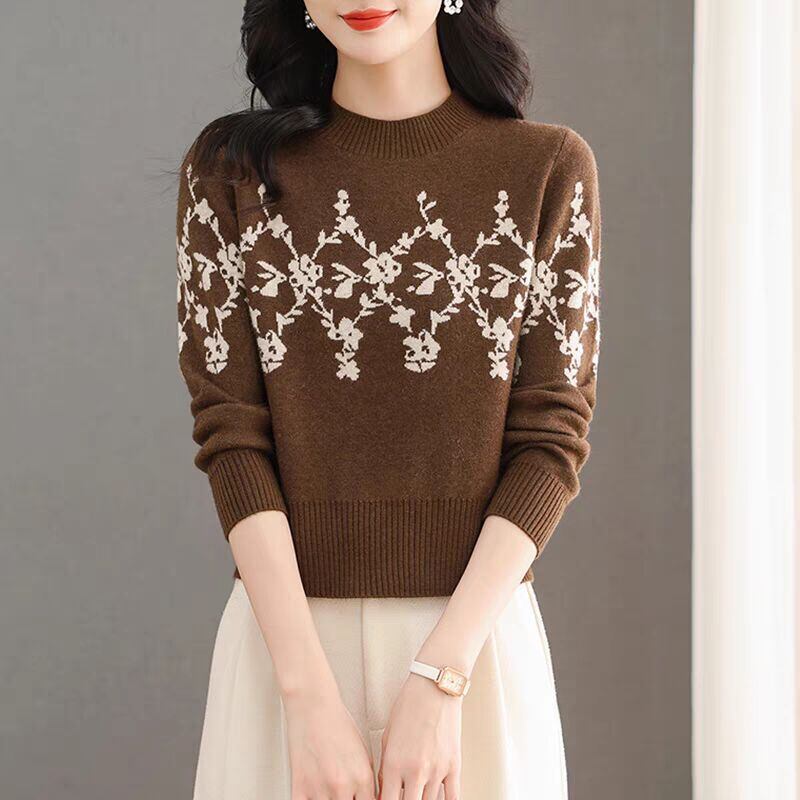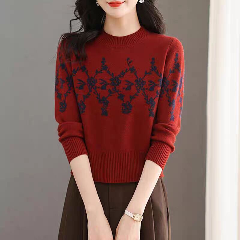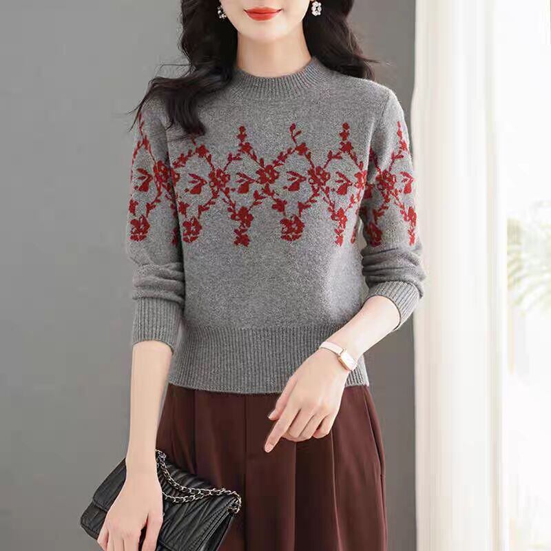 初回送料無料 秋冬レディースファッション ニットセーター ジャカード カジュアル 人気トップス