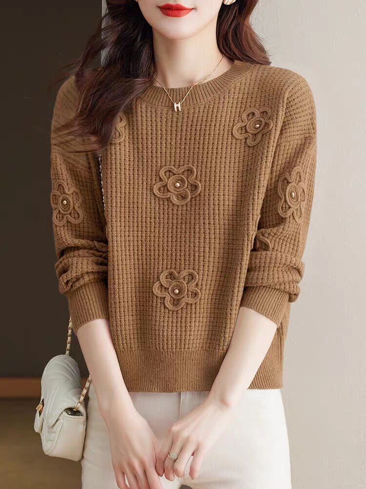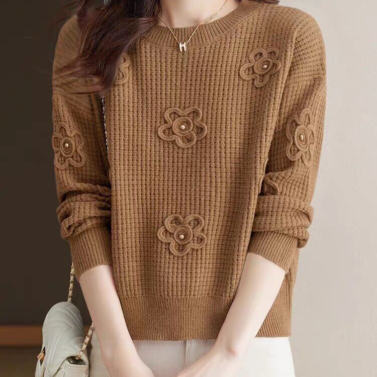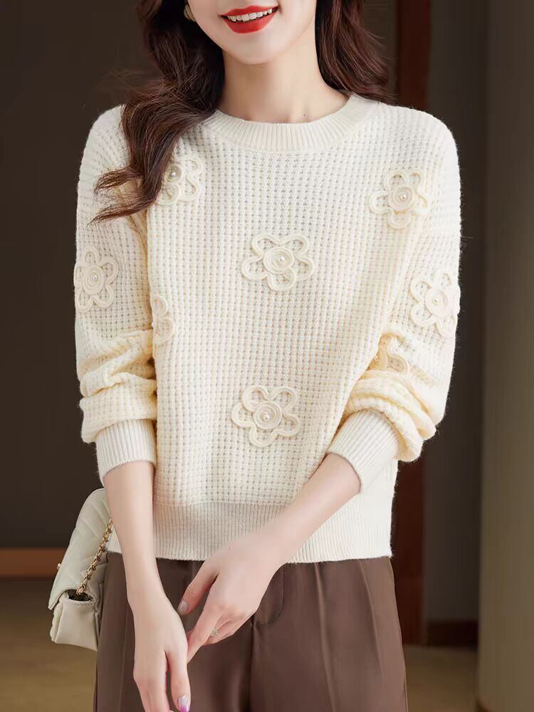 初回送料無料 秋冬レディースファッション 刺繍ニットセーター カジュアル 着こなし抜群 トップス