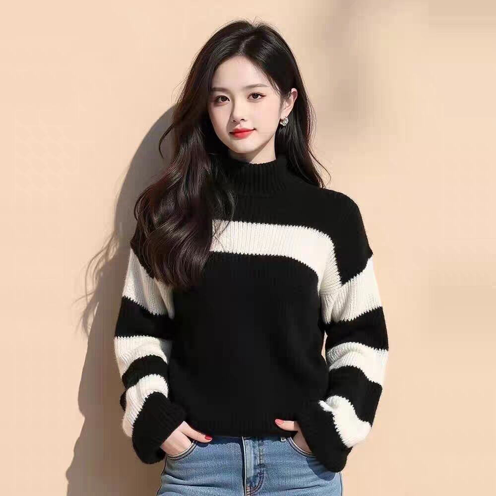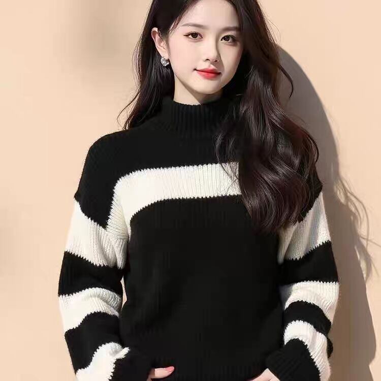 初回送料無料 秋冬レディースファッション ニットセーター ストライプ ハイネック 人気トップス