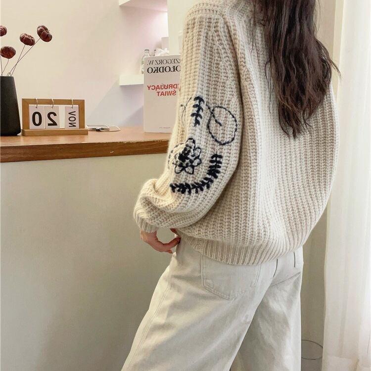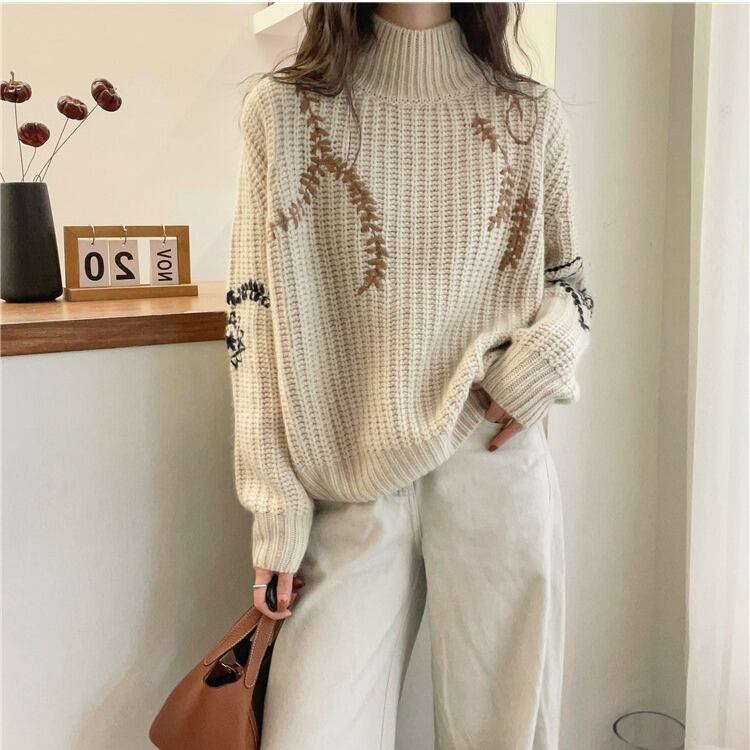 初回送料無料 秋冬レディースファッション 刺繍ニットセーター ハイネック カジュアル トップス