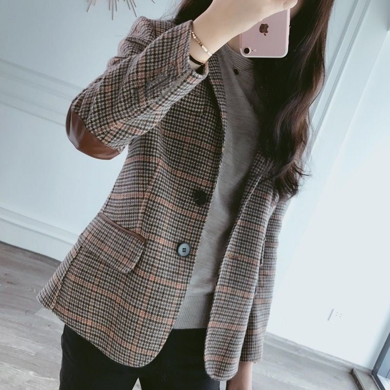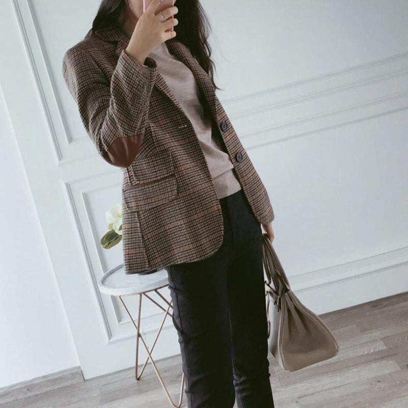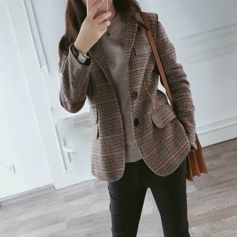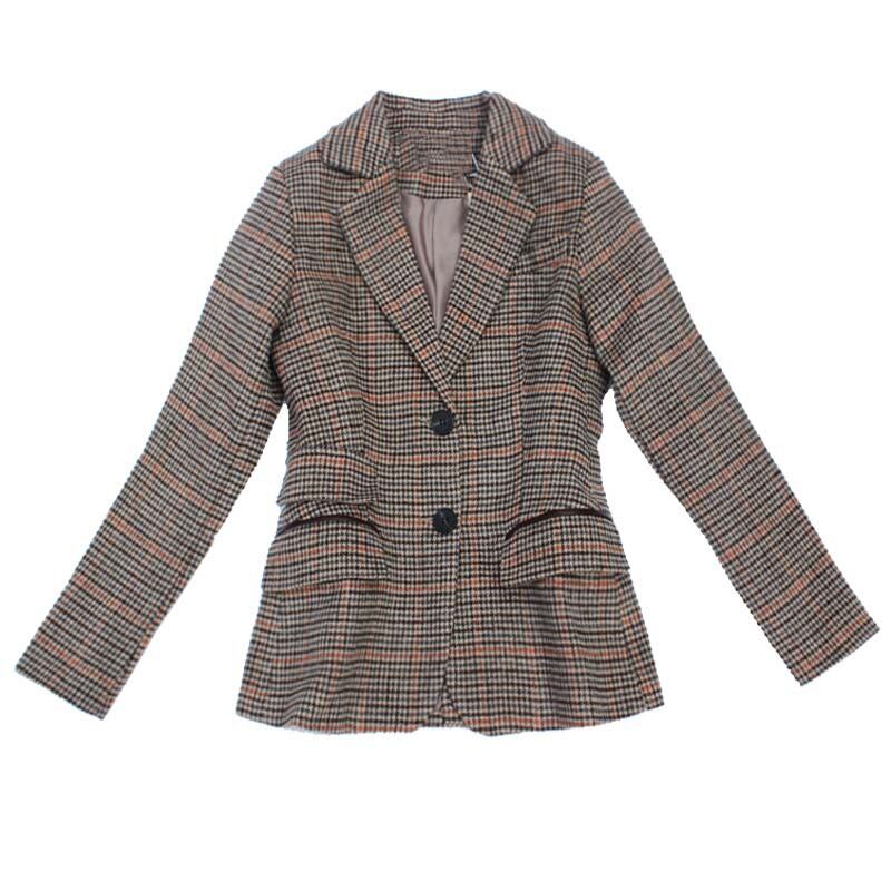 初回送料無料 新作 厚手のツイードチェックの小さなブレザーコート レディースファションコート