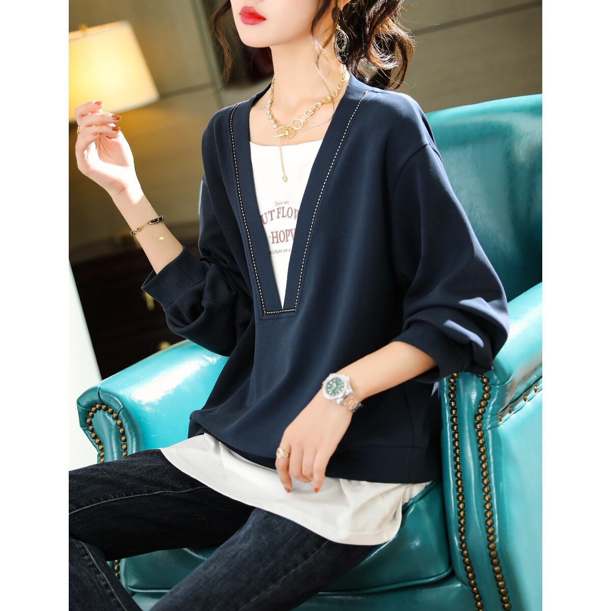 初回送料無料 新作レディースファッション カジュアル スウェット フェイク2枚 人気トップス