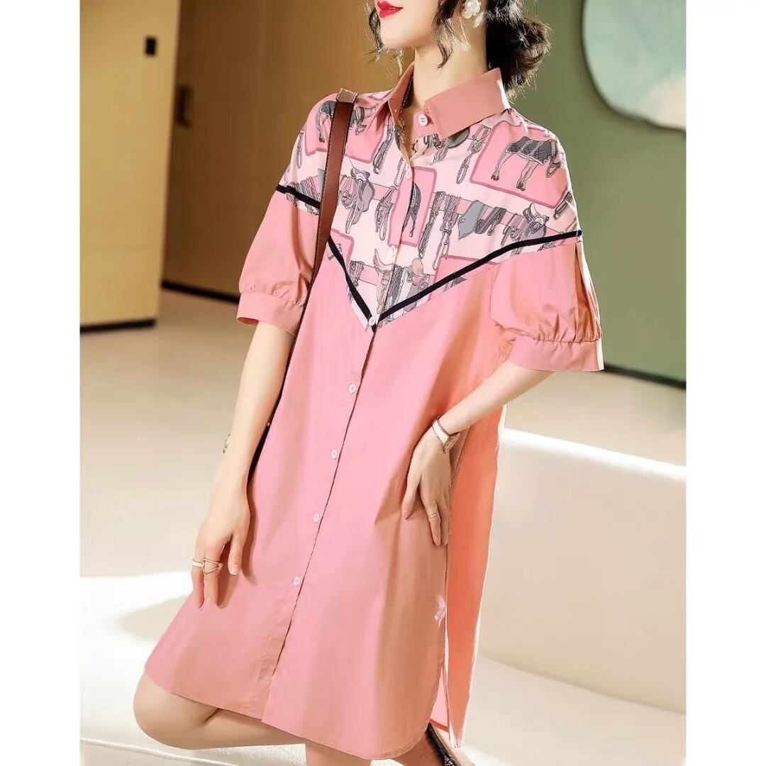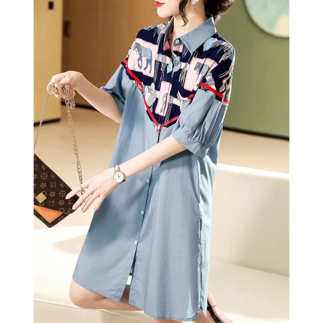 初回送料無料 夏のおしゃれなプリントシャツ風ワンピース チュニックワンピース ファション洋服
