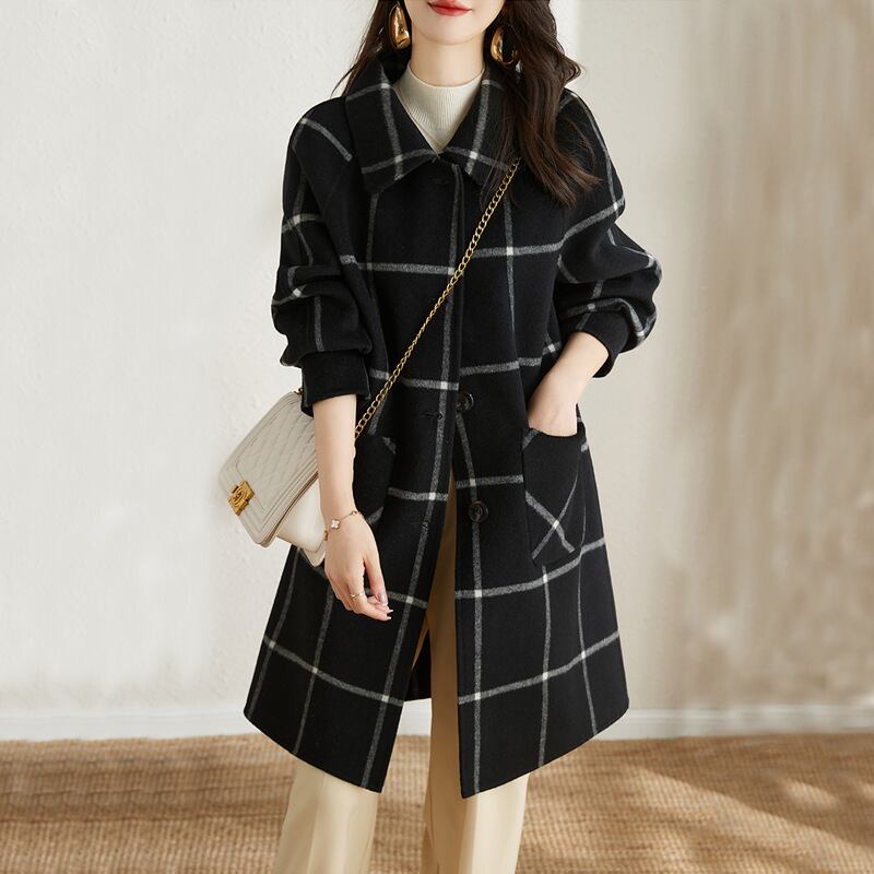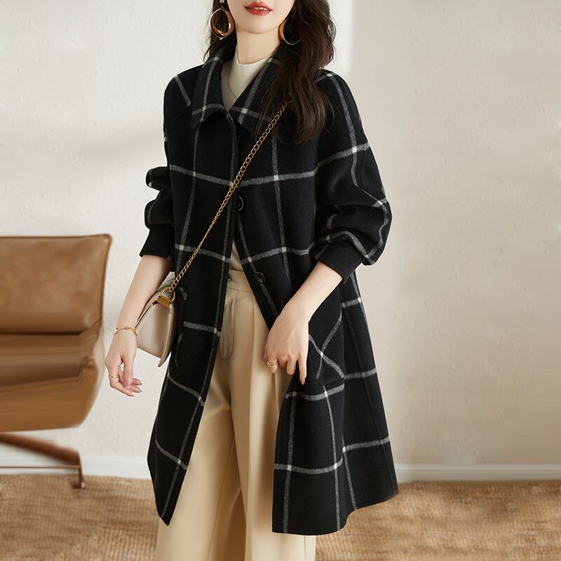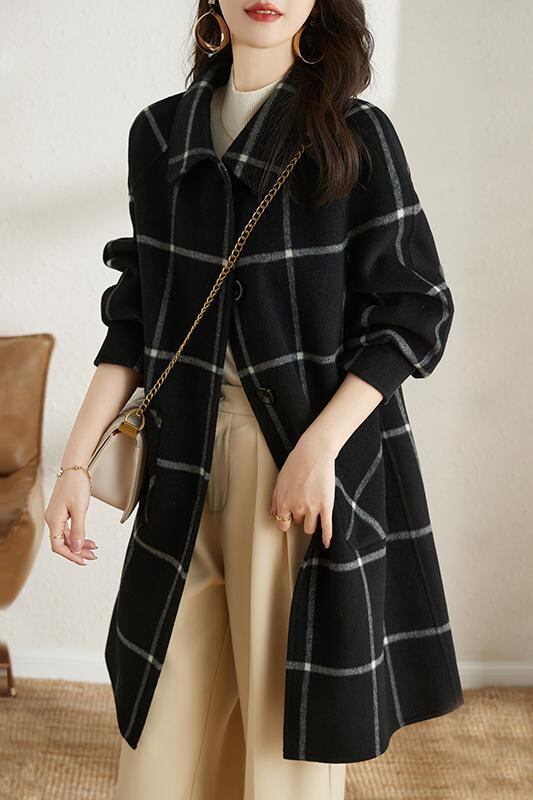 初回送料無料 秋冬の新作ツイードミディアムリバーシブルコート レディースファションコート
