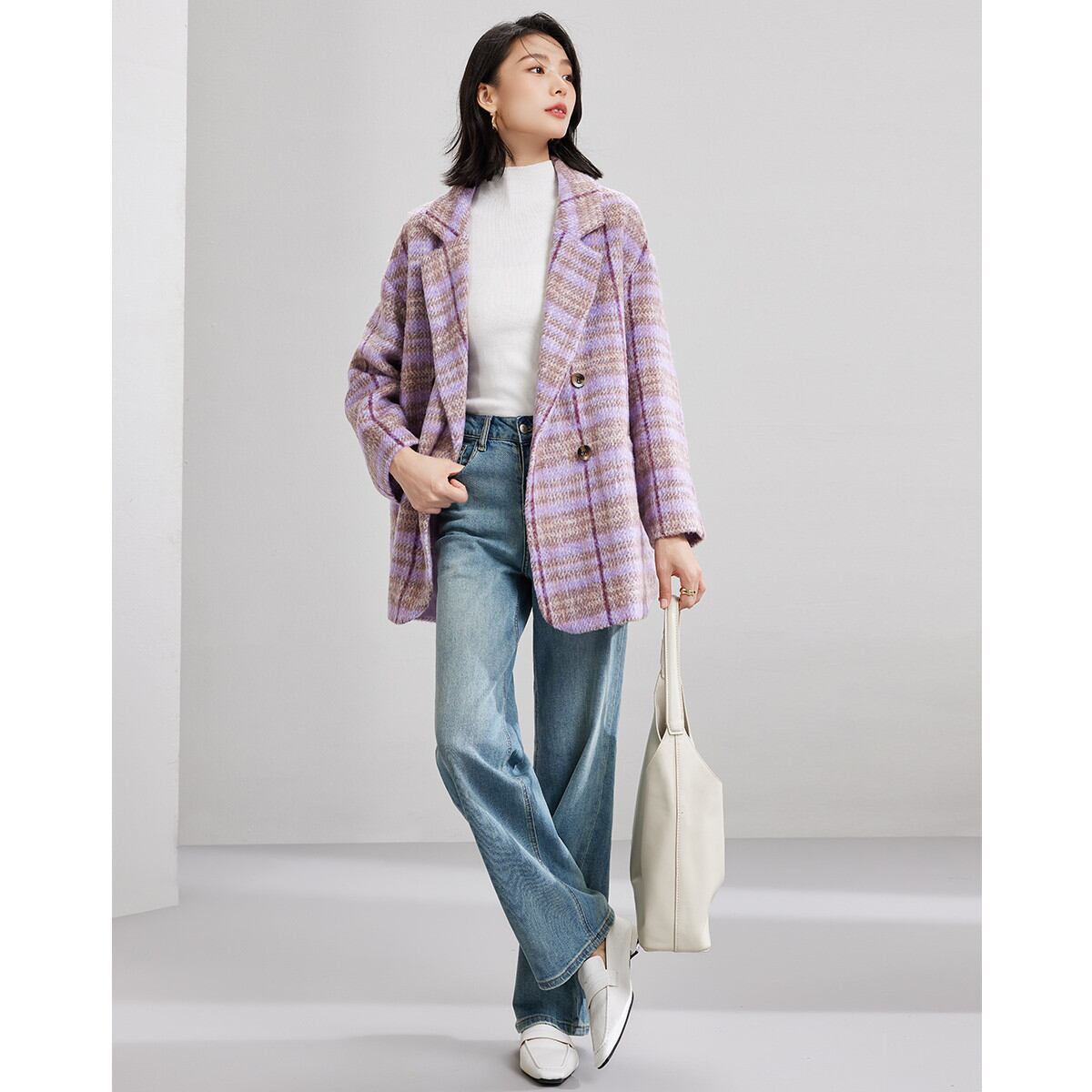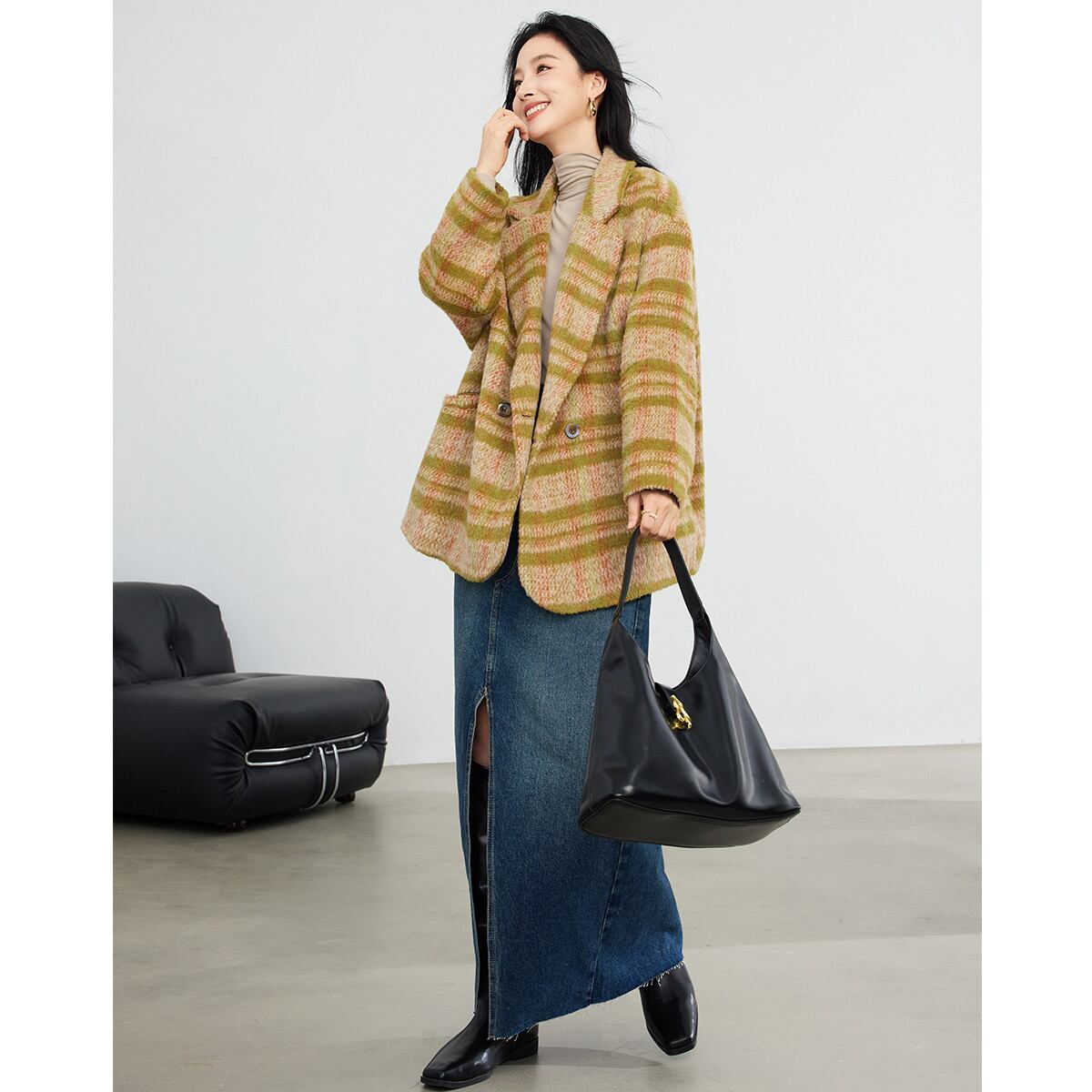 初回送料無料 新作 ショート丈のワイルドチェックコート レディースファションコート