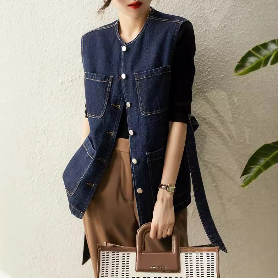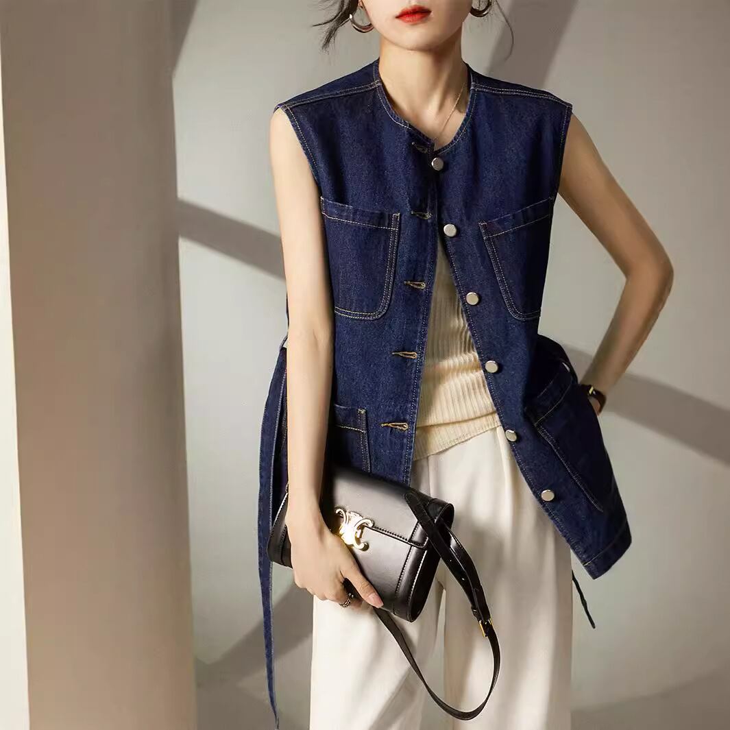 初回送料無料 新作レディースファッション カジュアル デニム ノースリーブ ベストジャケット