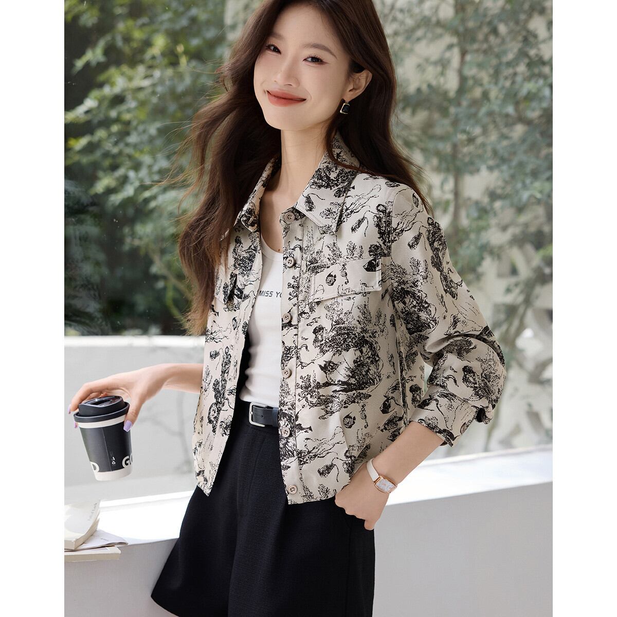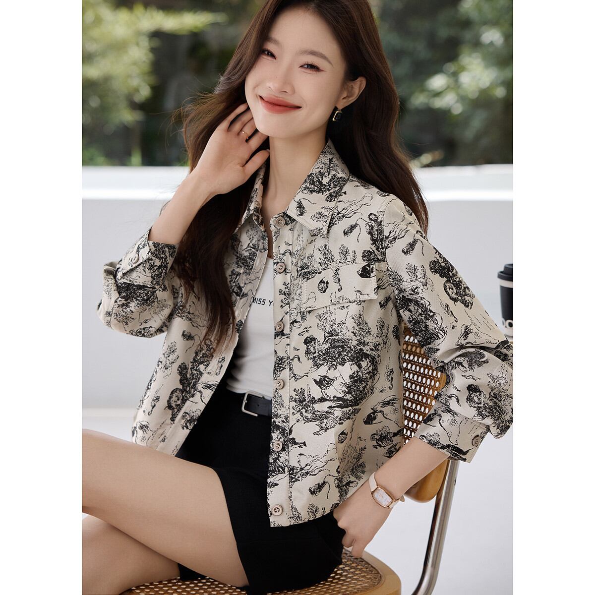 初回送料無料 新作レディースファッション カジュアル プリント ジャカード ショートコート