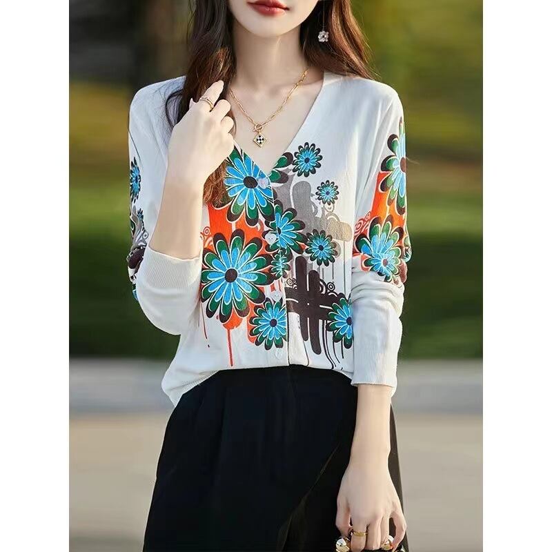 初回送料無料 新作レディースファッション カジュアル カーディガン プリント コート 人気上着