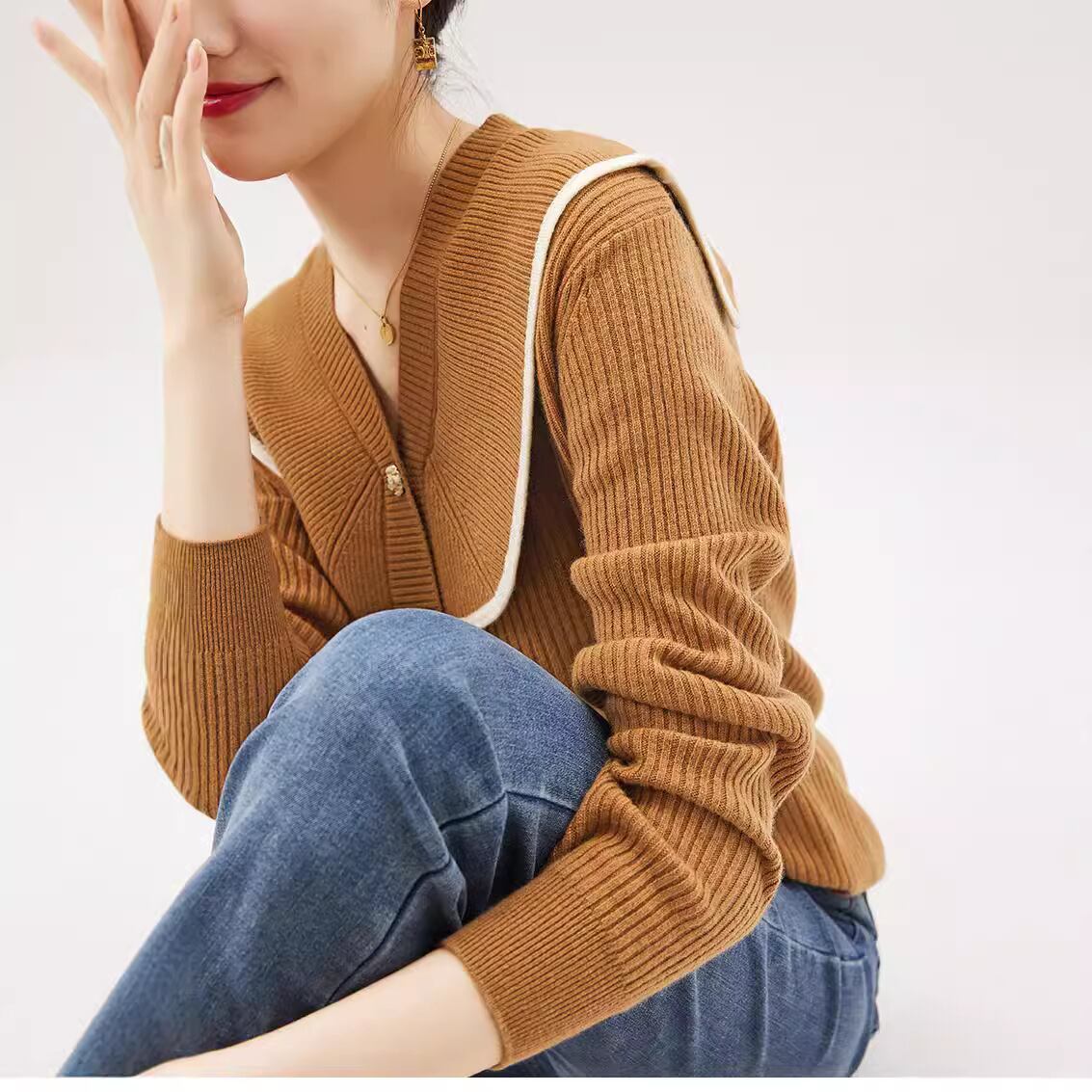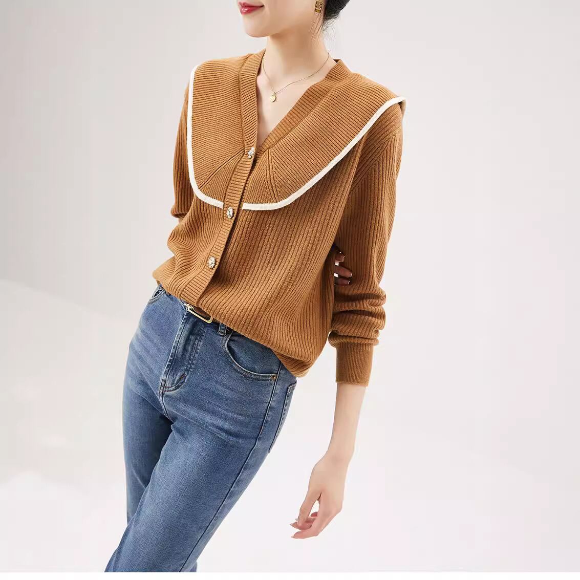 初回送料無料 新作レディースファッション カジュアル カーディガン ニット vネック 人気上着