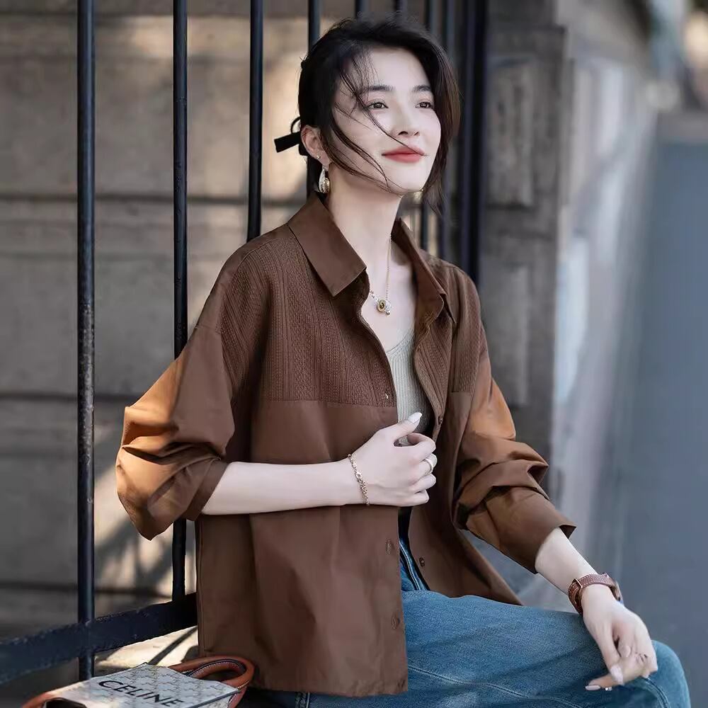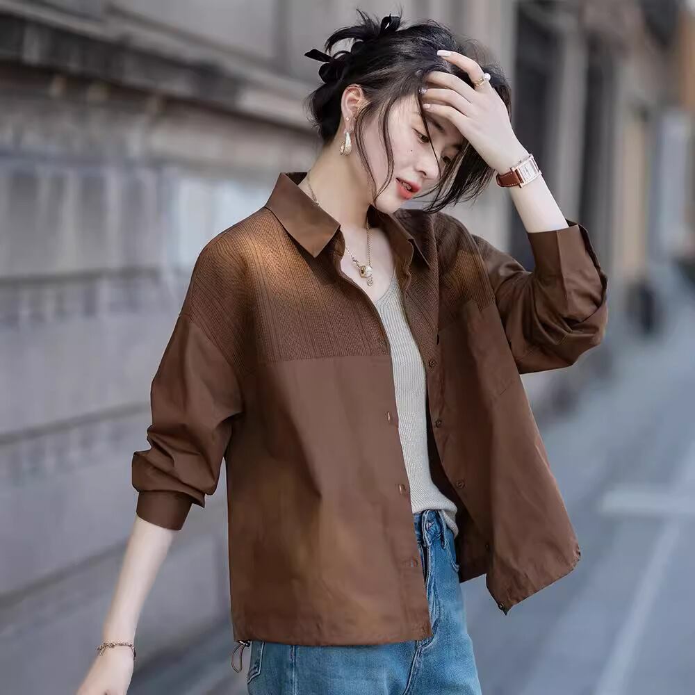 初回送料無料 新作レディースファッション カジュアル パッチワーク ゆったり 薄手上着 シャツ