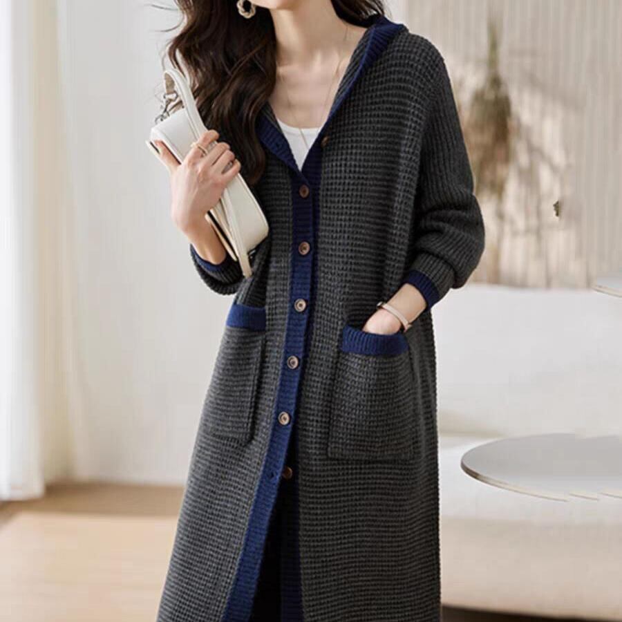 初回送料無料 秋冬レディースファッション ニットセーター カーディガン厚手フード付きコート 人気