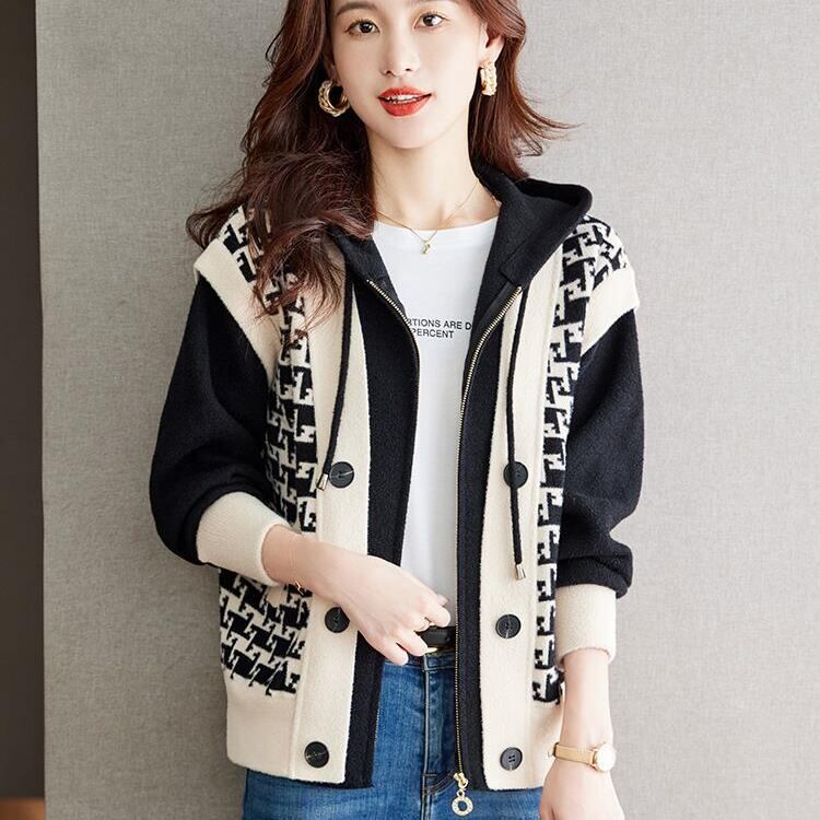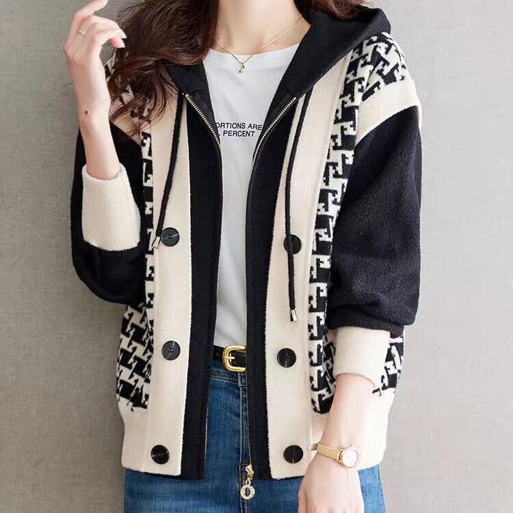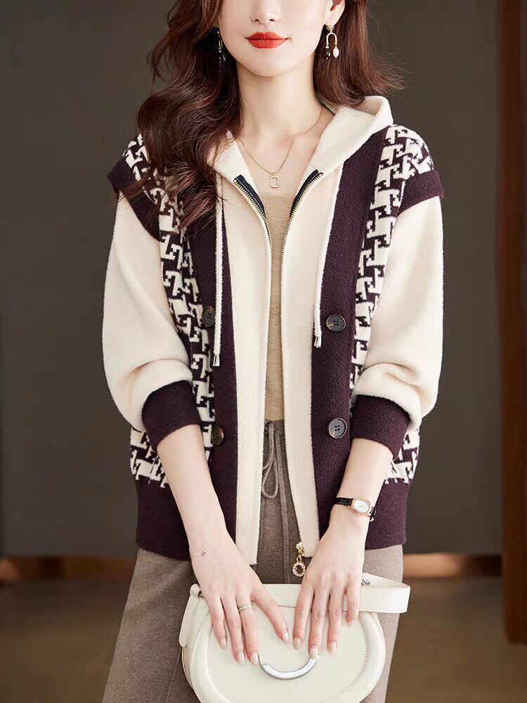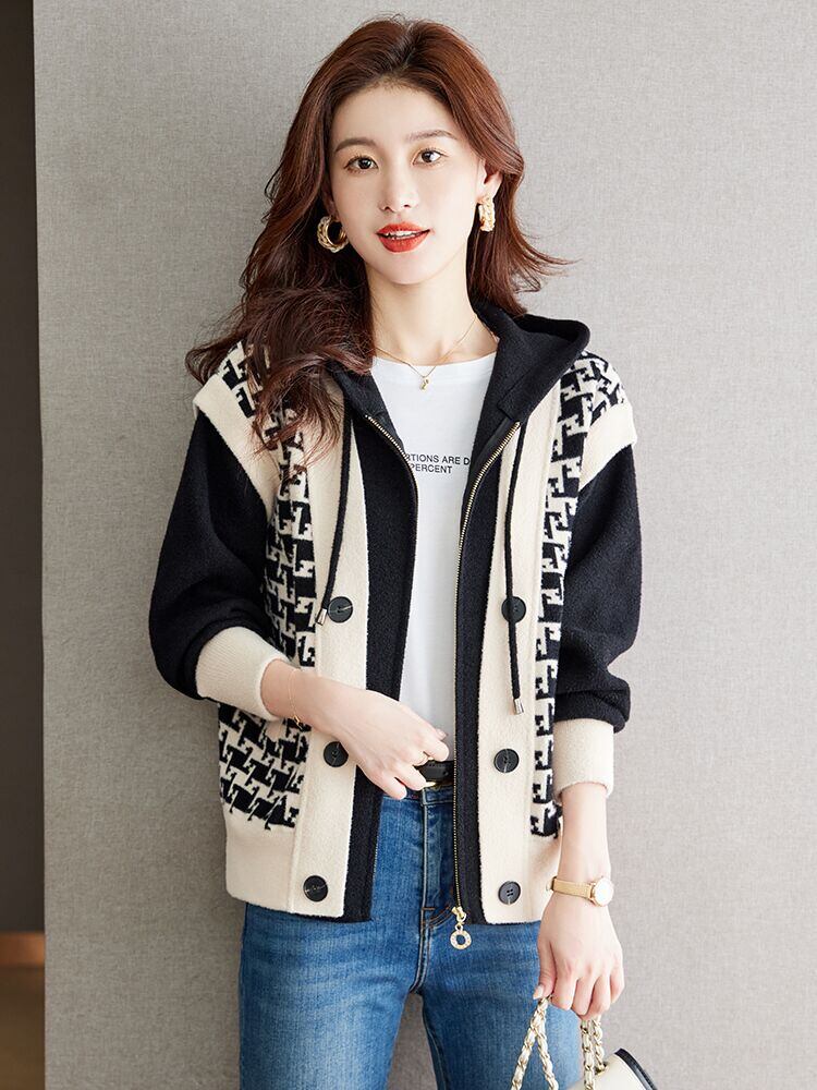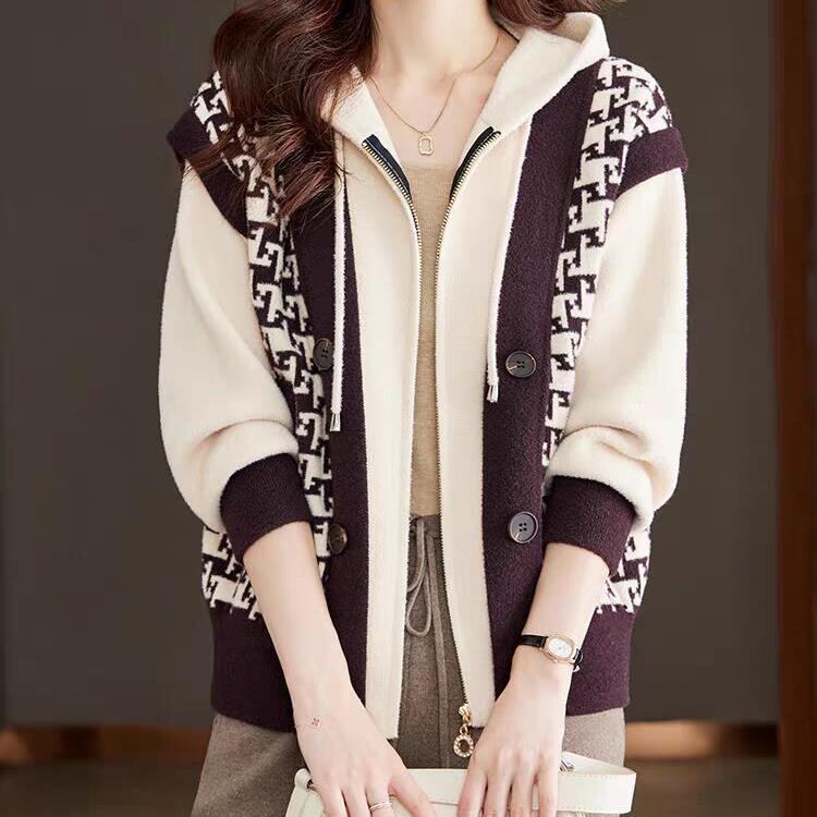 初回送料無料 秋冬レディースファッション ニットセーター フード付きコート ファスナー式アウター