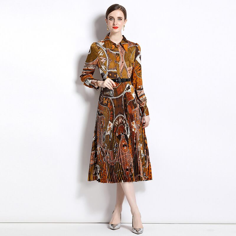 初回送料無料 秋新作 プリントおしゃれなワンピース レーディスファション商品 長袖ワンピース