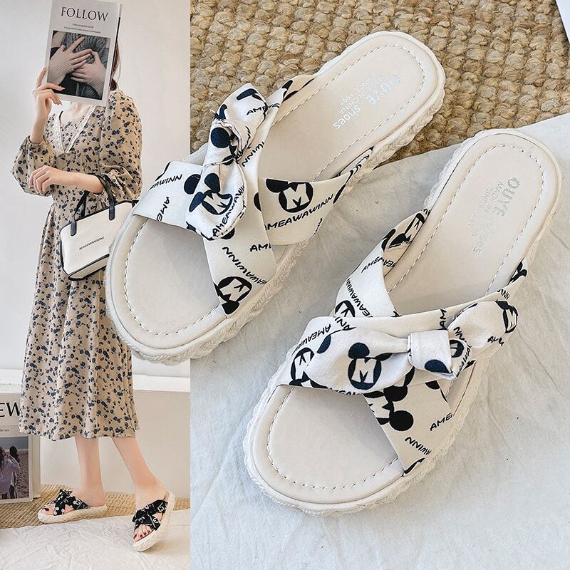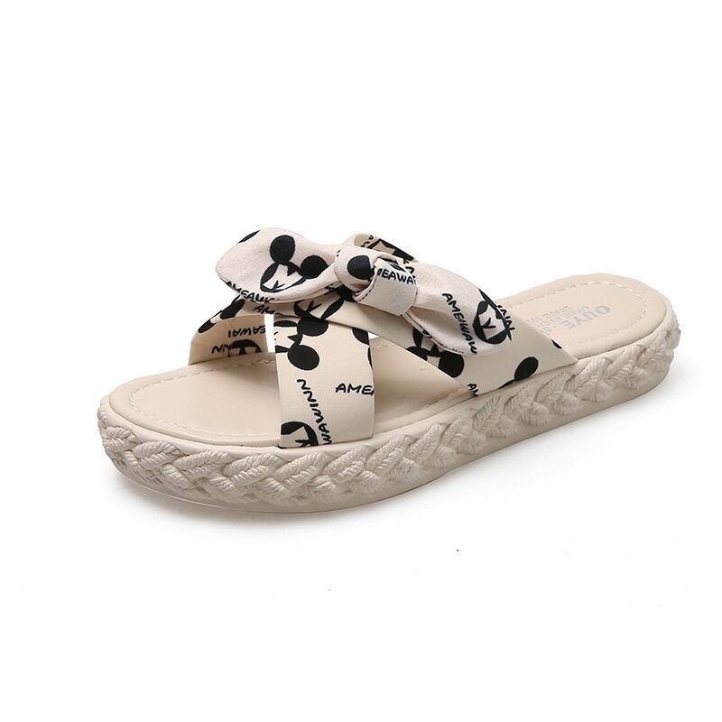 初回送料無料カジュアルスリッパレディースシューズボウクロスサンダル厚底