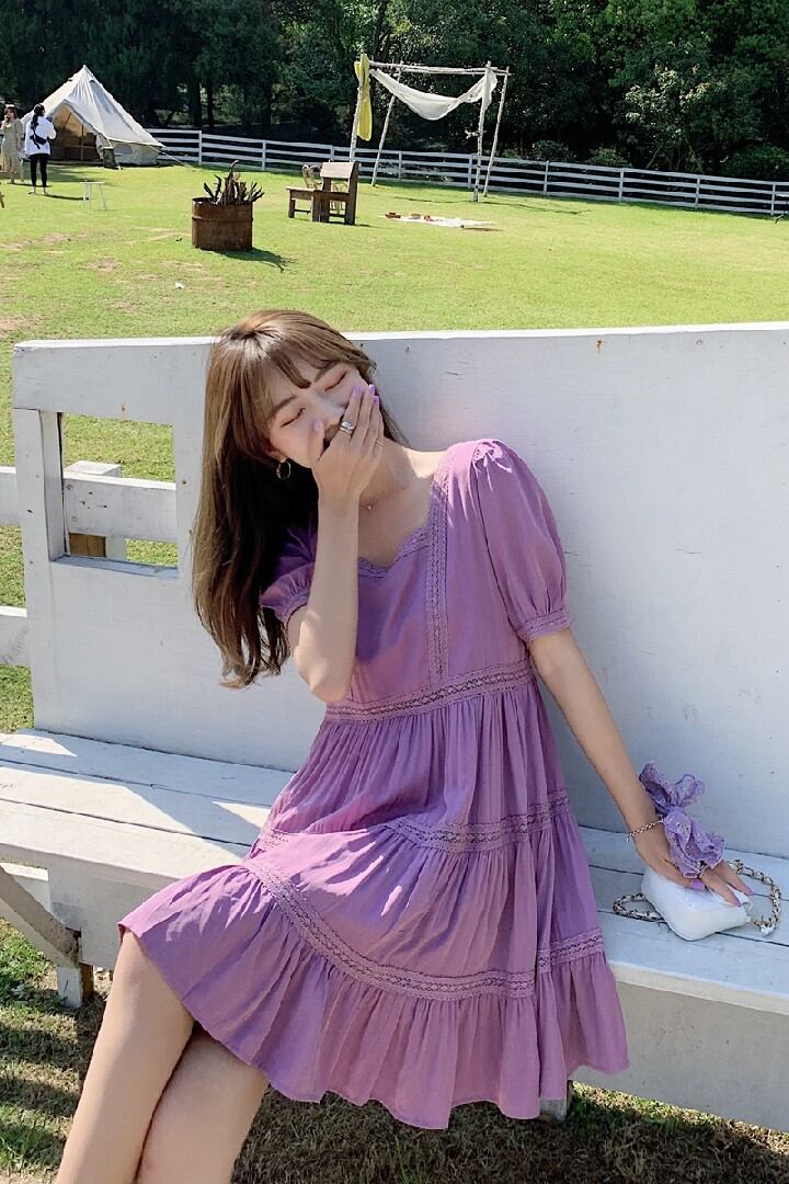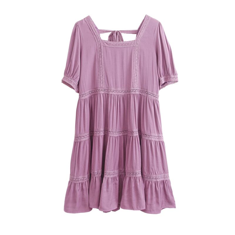 初回送料無料半袖ドレスレースパッチワークカットアウトレースワンピース