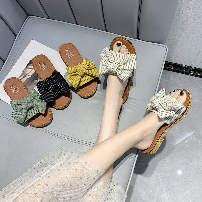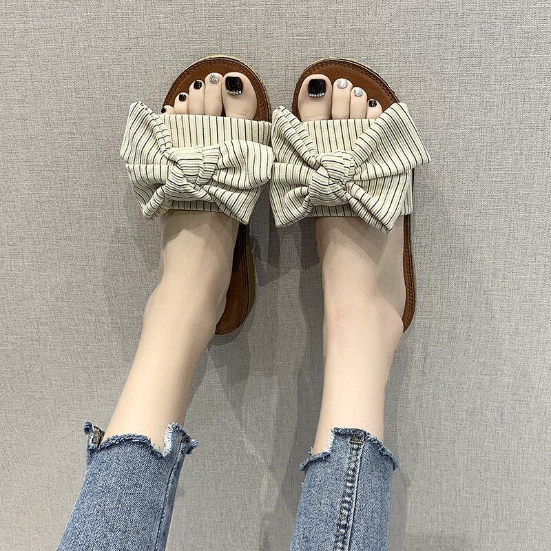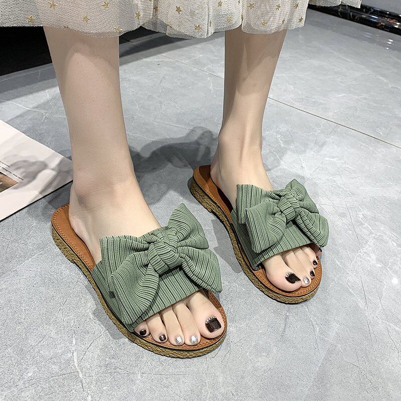 初回送料無料レディースサンダルボウスリッパローヒールオープントゥ