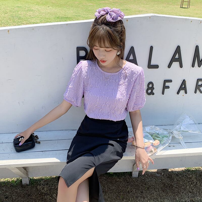 初回送料無料半袖シフォントッププリーツレディースファション服トップス