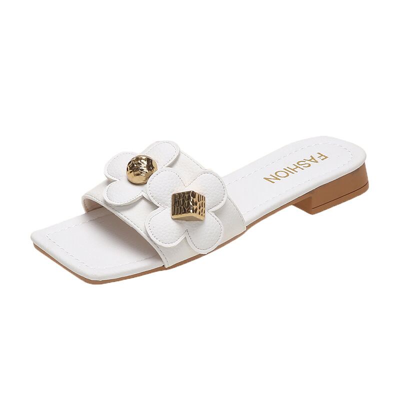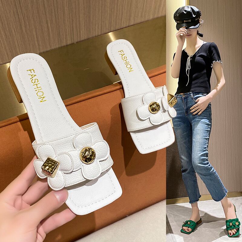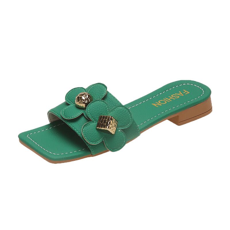 初回送料無料スリッパレディースシューズスクエアトゥチャンキーヒール