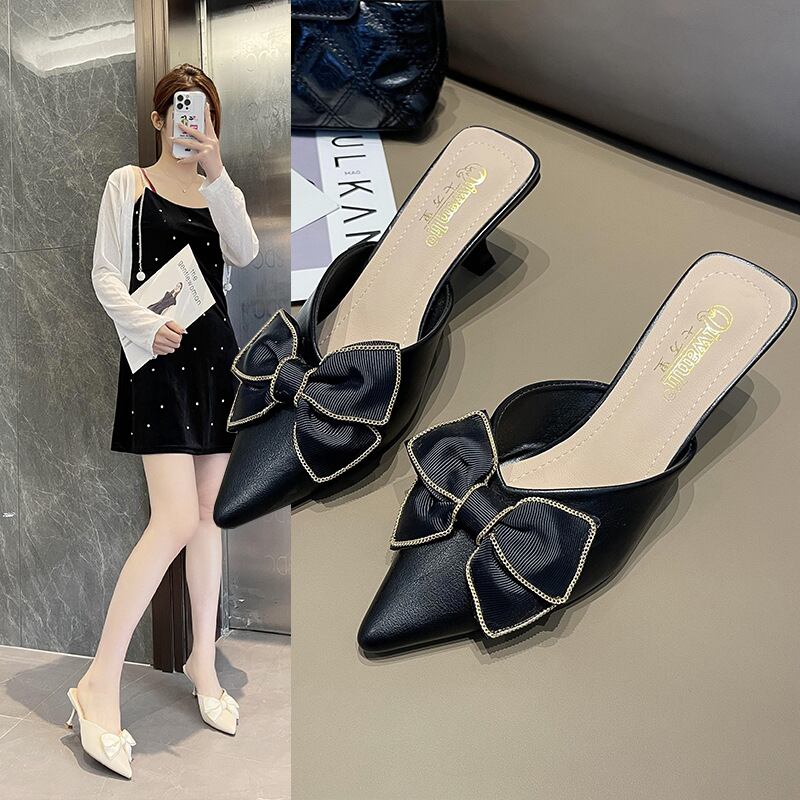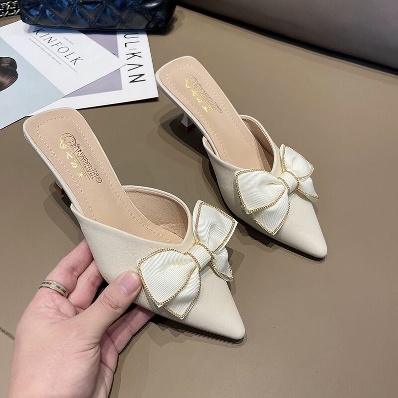 初回送料無料レーディスサンダルミディアムヒールスリッパボウセクシーファッション