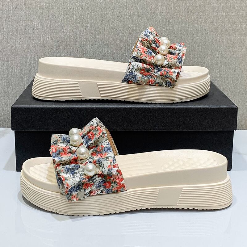 初回送料無料レーディスサンダルプラットフォームスリッパパールファッション