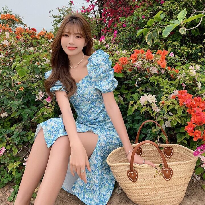 初回送料無料スクエアネックドレスサマーレディースファション服ワンピース