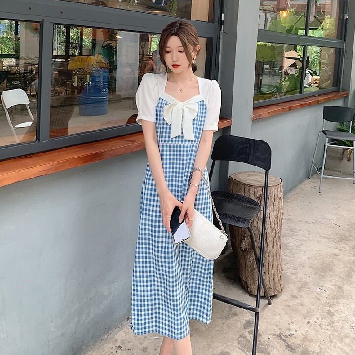 初回送料無料ドレスサマーVネックスリットボウチェックレディースファション服ワンピース
