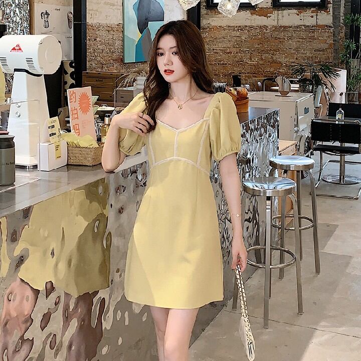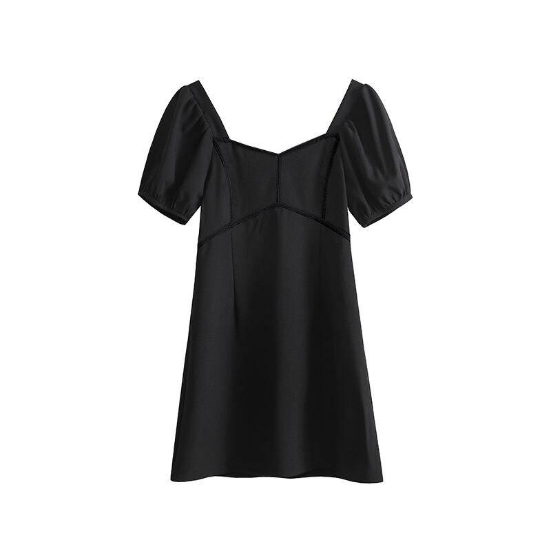 初回送料無料ドレスサマーステッチパフ袖スリムレディースファションワンピース