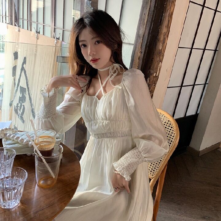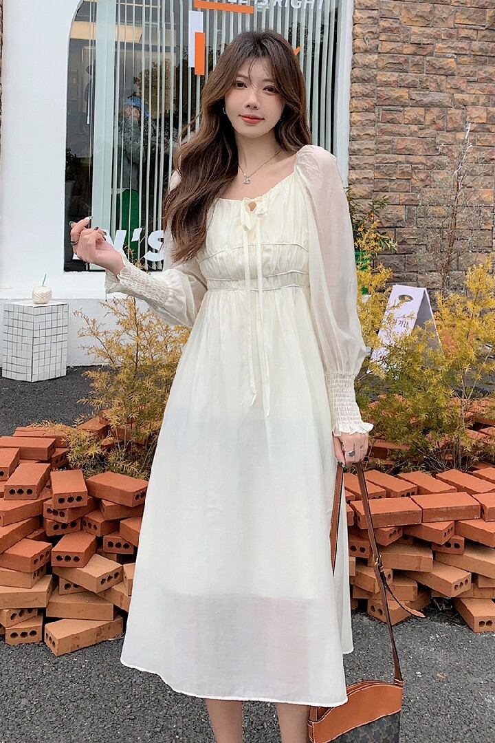 初回送料無料レースアッププリンセススリーブ薄いレースアップレディースファションワンピース