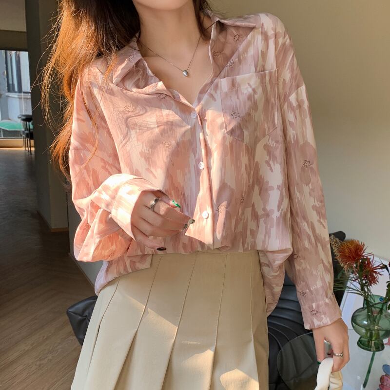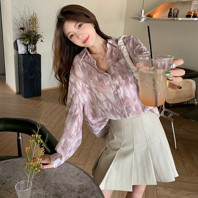 初回送料無料シフォンタイダイラペルシングルブレストシャツトップス
