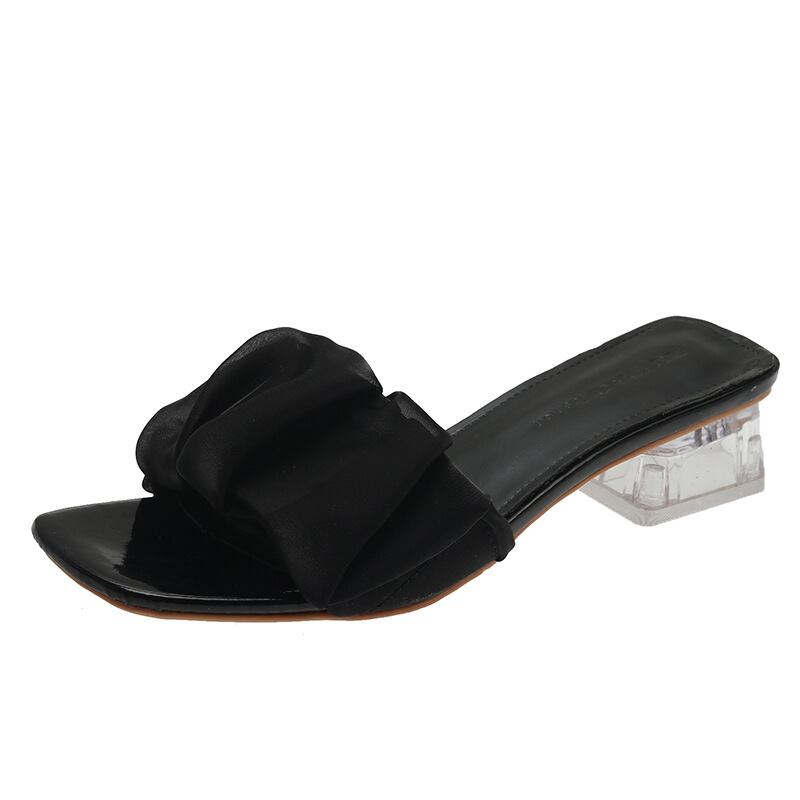 初回送料無料スリッパチャンキーヒールスクエアトゥレーディスサンダルファッション