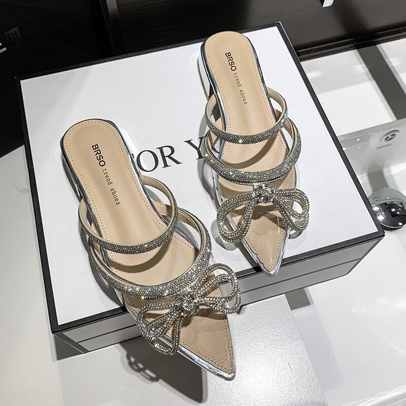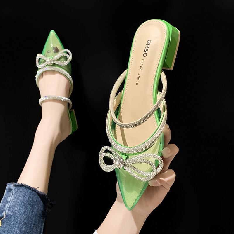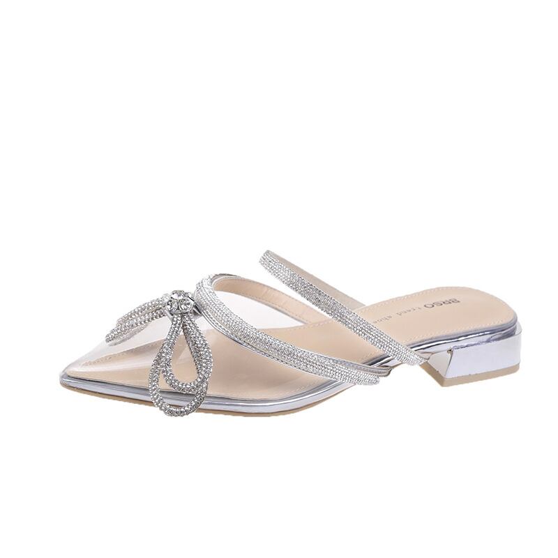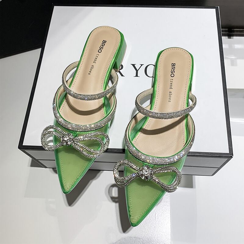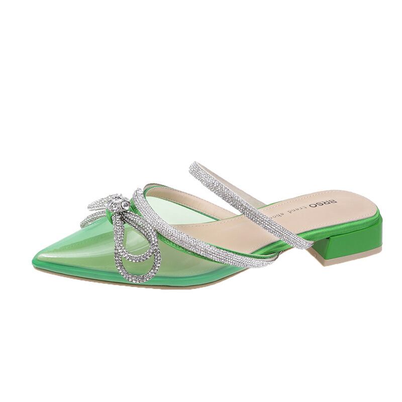初回送料無料レディースサンダルスリッパチャンキーヒールボウスリップオン