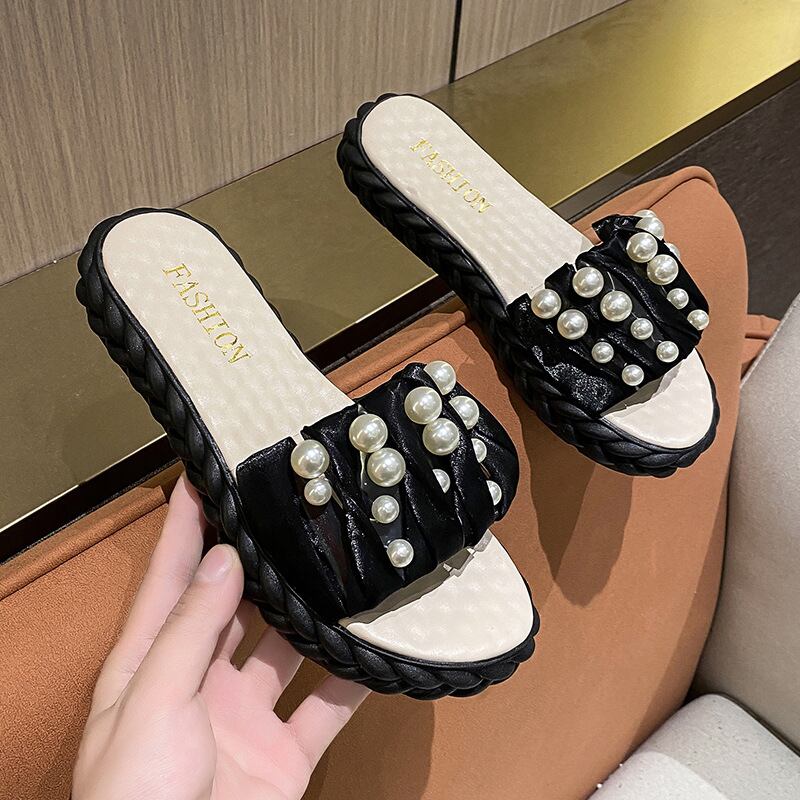 初回送料無料ビーチシューズサンダルスリッパビーズ厚底ラウンドオープントゥ