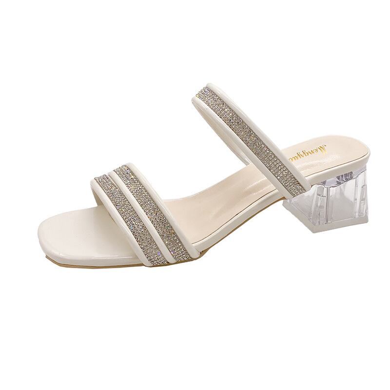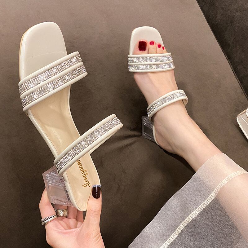 初回送料無料スリッパハイヒールチャンキーヒールスクエアトゥレディースサンダル