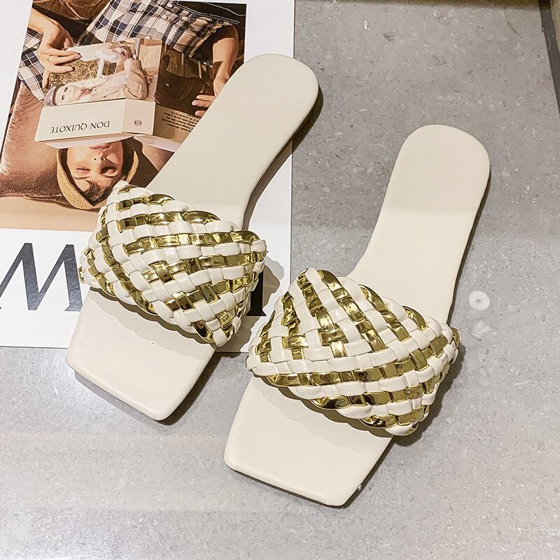 初回送料無料レディースサンダル平底スリッパスクエアトゥファッションシューズ