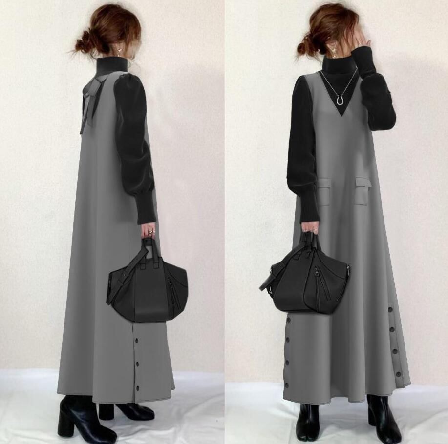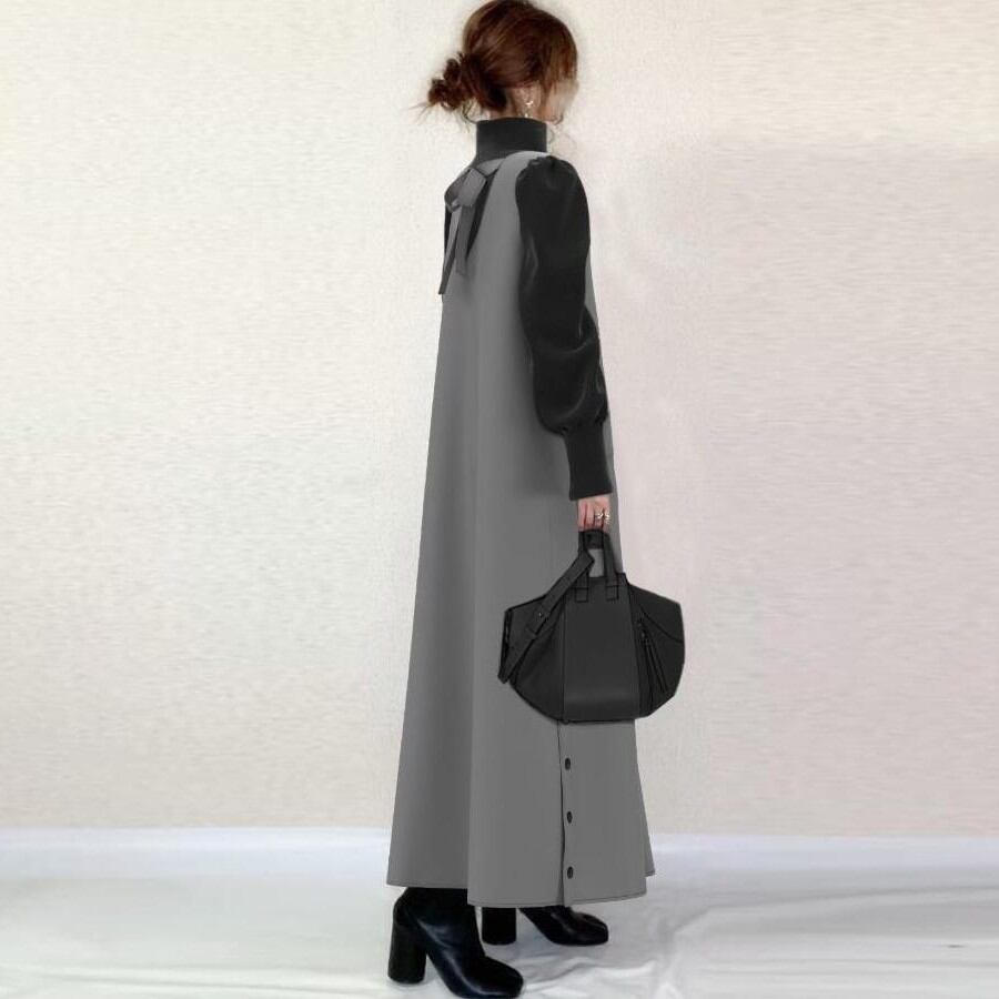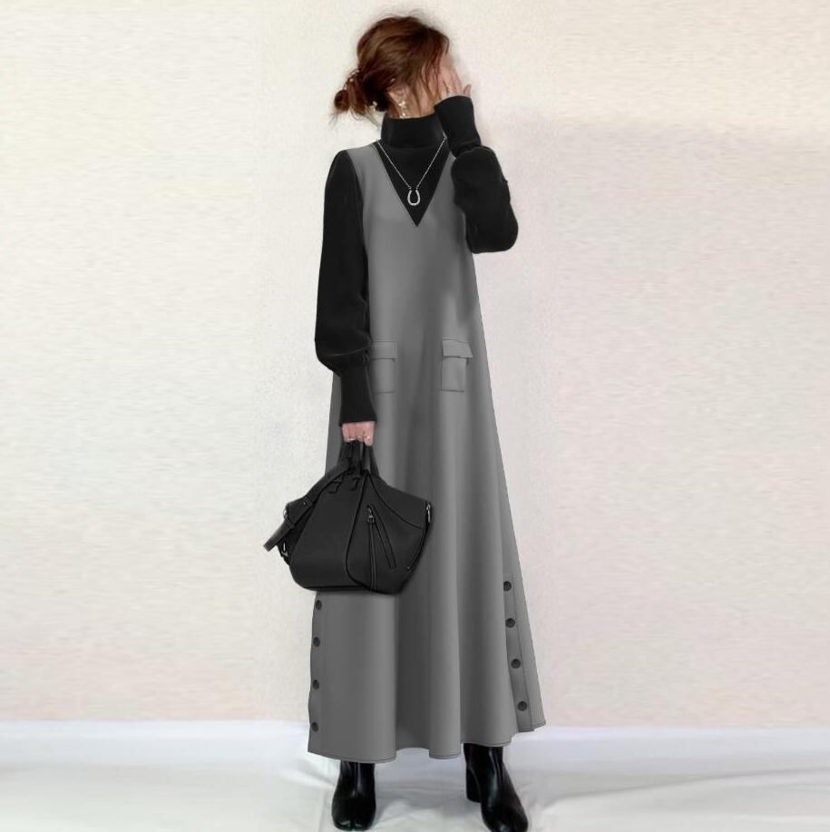 初回送料無料 新作レディースファッション パッチワーク タートルネック シンプルワンピース