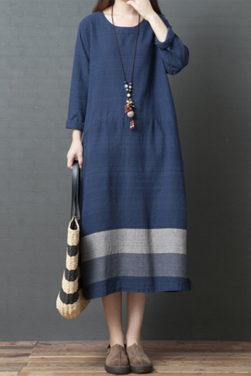 初回送料無料プラスサイズのストライプコットンリネンドレスレディースファション服ワンピース