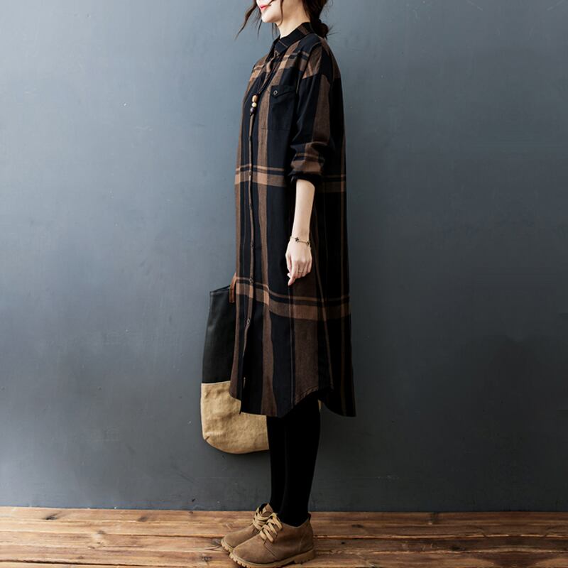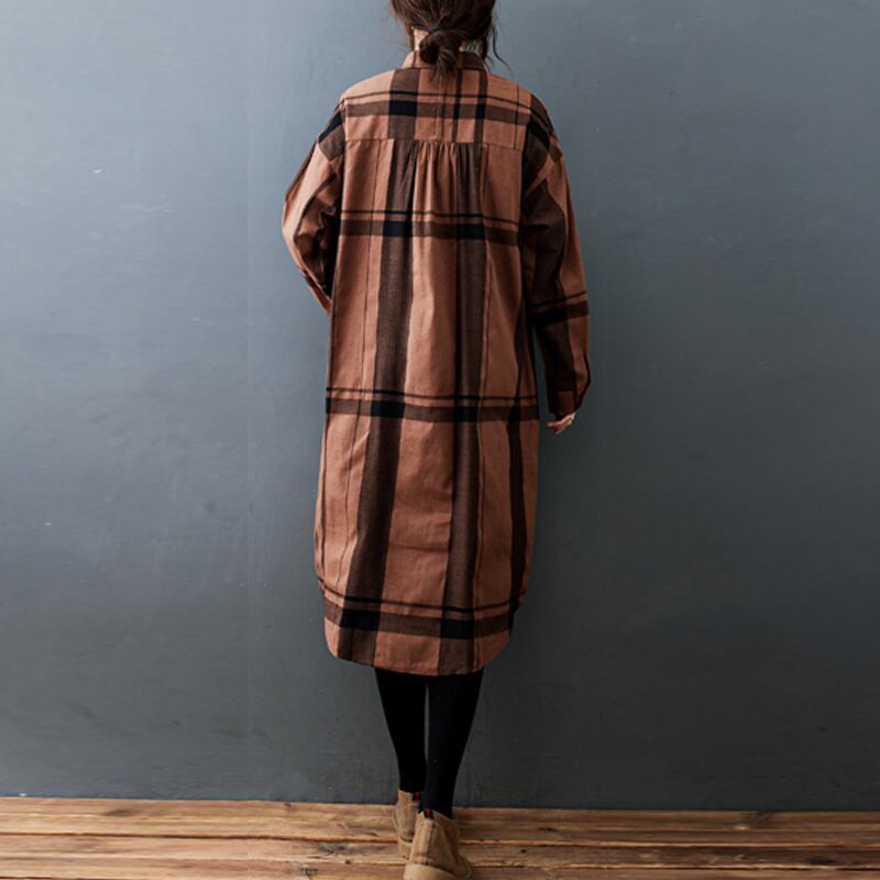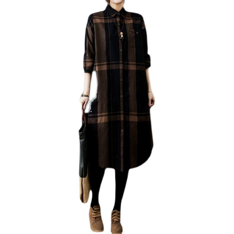 初回送料無料大きいサイズゆったりサイズ棉麻チェック柄ワンピースレディースファション